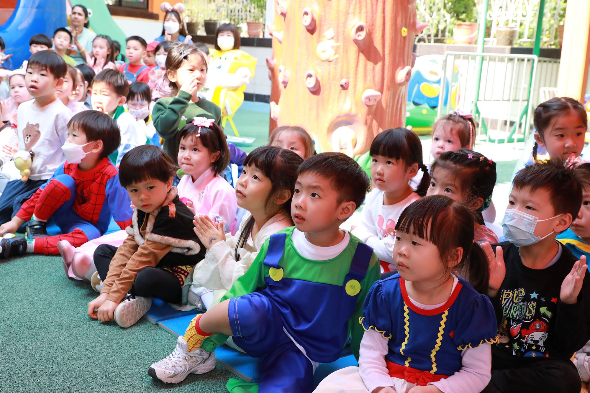 3월 25일(화요일), 우리 유치원은 3월과 4월에 태어난 어린이들을 위해 “만화 캐릭터” 생일 파티를 개최했습니다. 행사 주제에 맞춰 어린이들은 자신이 가장 좋아하는 만화 캐릭터로 분장했는데, 우아한 공주님, 용감한 슈퍼히어로, 멋진 우디, 다양한 귀여운 동물 등 다양한 캐릭터로 변신했습니다... 의상들은 화려하고 매우 흥미로웠습니다! 당일에는 어린이들의 만화 캐릭터 의상과 메이크업에 맞춘 다양한 흥미진진한 축하 행사가 진행되었습니다. 주요 만화 캐릭터들이 등장했으며, 새로운 재미있는 만화 캐릭터 게임들도 진행되어 과정이 흥미진진하고 짜릿했습니다. 또한 만화 캐릭터 패션 쇼도 열렸고, 어린이들은 즐거운 시간을 보냈습니다! 그날 학교의 모든 교사들과 학생들은 스티커 교환 활동에 참여하며 타인과 나누고 베푸는 것을 배우는 시간을 가졌습니다. 모두에게 즐거운 하루였습니다!