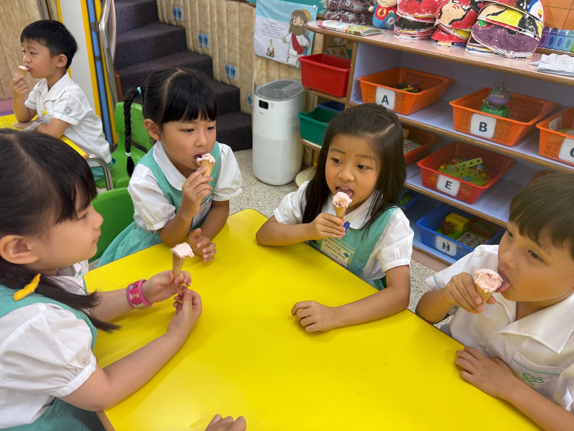 이 기쁜 날에 우리는 아이들과 함께 딸기 아이스크림을 나누었습니다. 빨간 딸기 속살을 통해 아이들은 예수님의 사랑에 대한 감사를 상징하는 빨간색을 기억하며, 그분이 우리를 위해 귀중한 피를 흘리셨고, 우리와 예수님의 사랑을 나누셨다는 것을 깨달았습니다. 아이들은 매우 행복해했습니다! 아이스크림을 먹으며 예수님의 사랑에 대한 감사를 표현했습니다.