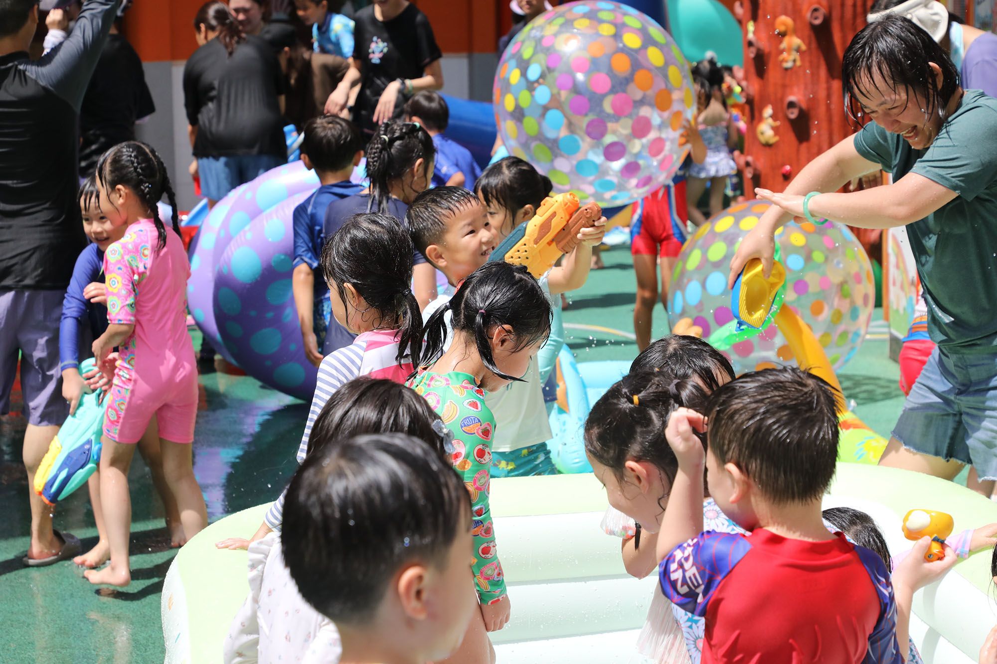 在2025年7月3日和4日,我们举办了「动力水世界」的活动!在这个炎热的夏天,宝血幼儿园变成了一个充满欢乐的「水上乐园」。全校的老师和小朋友们都穿上了色彩缤纷的泳衣,大家一起跳进喜乐西瓜水池,还参与水枪大战等好玩有趣的活动。