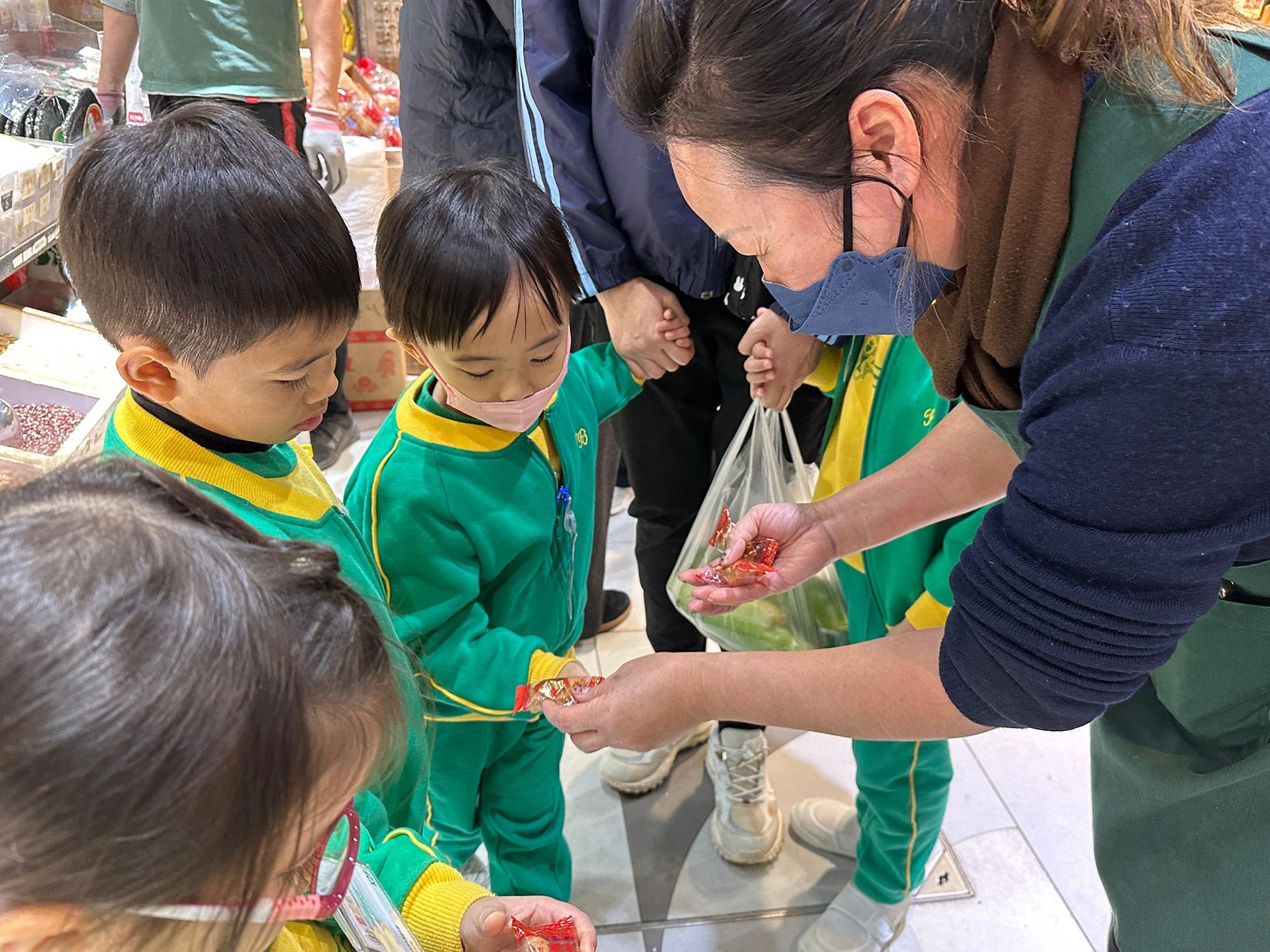 1월 8일, 10일, 14일, 유치원 2학년(K2) 반 학생들이 소사이완(小西灣)의 사이완 시장(西灣街市)을 방문했습니다. 아이들은 주변 상인들이 판매하는 다양한 식재료들을 호기심 가득한 눈으로 관찰했습니다. 아이들이 식재료를 구매하는 과정을 도와주신 시장 상인 분들께 따뜻한 협조에 감사드립니다. 이번 체험을 통해 아이들은 식료품 구매 과정과 예절을 배우고 다양한 식품군에 대한 지식을 넓혔습니다. 모두가 열정적으로 학습 여정에 참여하며 직접 체험을 통해 새로운 통찰력을 얻었습니다.