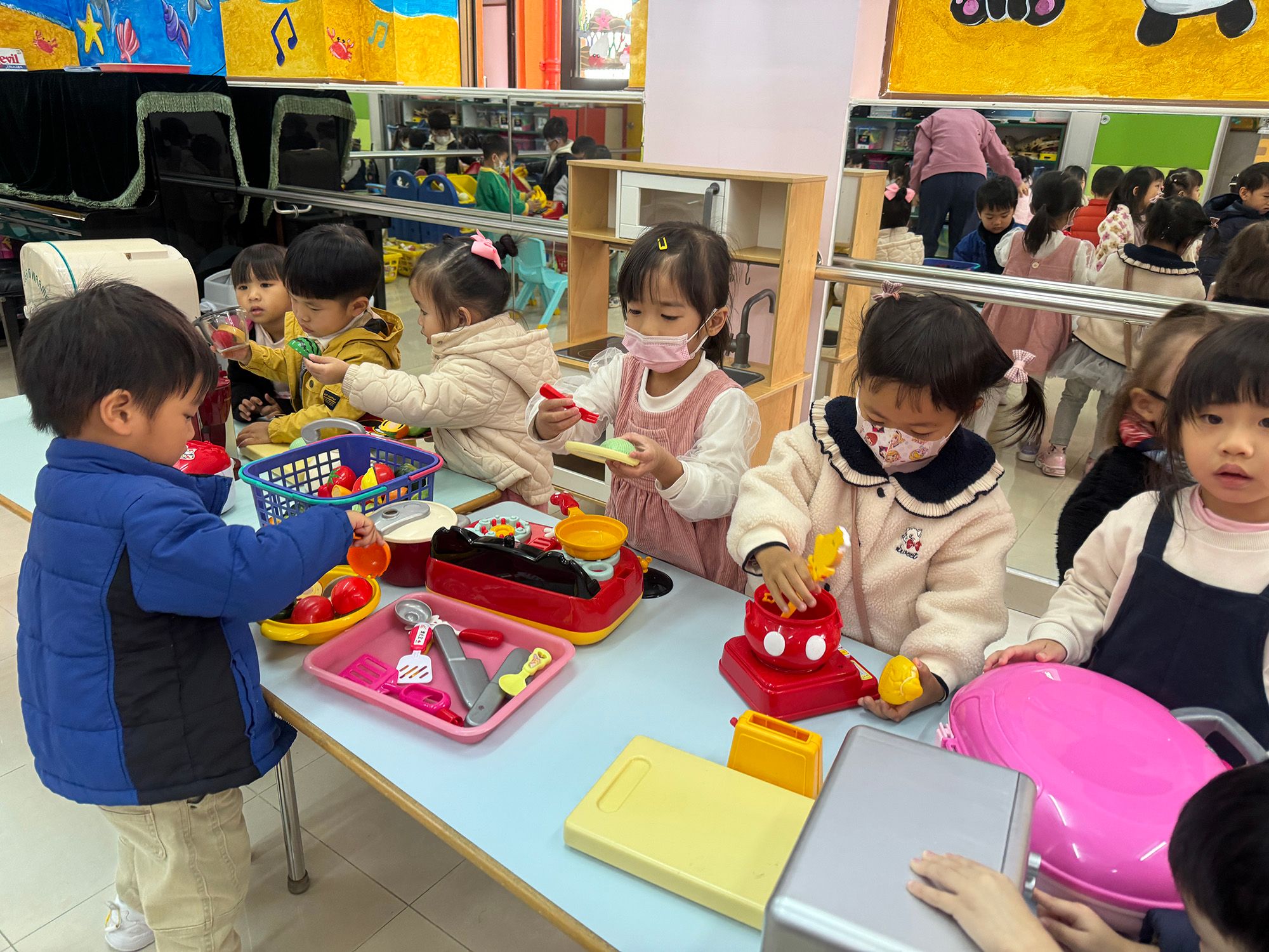 En lien avec le thème « Je suis un grand frère », la classe maternelle a organisé un « Family Fun Show » le 17 janvier 2025, au cours duquel les parents ont déguisé leurs enfants en différents membres de la famille. Les parents ont déguisé leurs enfants en différents membres de la famille : une maman en tablier, un papa en cravate, un frère avec un sac à dos et une sœur avec une bouteille de lait ! L'enseignant a décoré la salle de jeux comme une maison chaleureuse, une maison de thé et un supermarché. Tous les « papas », « mamans », « frères » et « sœurs » sont allés au salon de thé pour manger des dim sum, au supermarché pour faire des courses ou ont préparé des plats dans la cuisine, et ils se sont tous bien amusés !