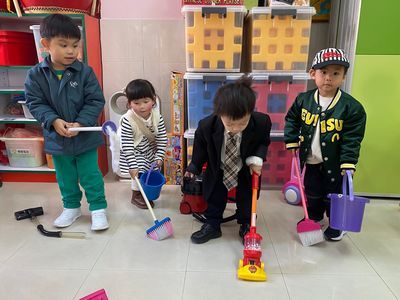 為配合「我是哥哥」的主題活動,幼兒班小朋友於2025年 1月17日舉行了「家庭成員繽紛Show」活動。家長為幼兒悉心打扮成不同的家庭成員,有穿著圍裙的媽媽、有帶上領呔的爸爸、有背著書包的哥哥、有拿著奶樽的妹妹,他們的造型維肖維妙,十分可愛呢!老師預先把唱遊室佈置成了一個溫暖的家、茶樓和超級市場,各位「爸爸」、「媽媽」、「哥哥」和「妹妹」一起上茶樓吃點心、到超級市場購物或在廚房烹調食物,看看他們玩得十分開心啊!