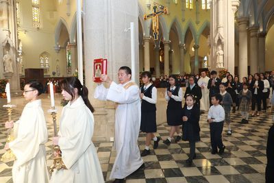 同賀寶血幼稚園、小學及中學創校80周年校慶,三校於2025年1月24日(星期五)在香港堅道聖母無原罪主教座堂舉行感恩聖祭慶典,我們萬分榮幸恭請了香港天主教教區主教周守仁樞機為我們主禮,並以「主愛承傳80載 健康積極創未來」為主題,代表寶血學校八十年來堅持不懈,把這份愛承傳給我們的下一代,生生不息。感恩聖祭後,主禮嘉賓更移師到明愛禮堂參與感恩茶會,為我們進行切餅及祝酒儀式,而寶血中、小、幼學生更以精彩的歌舞表演為感恩茶會助慶。