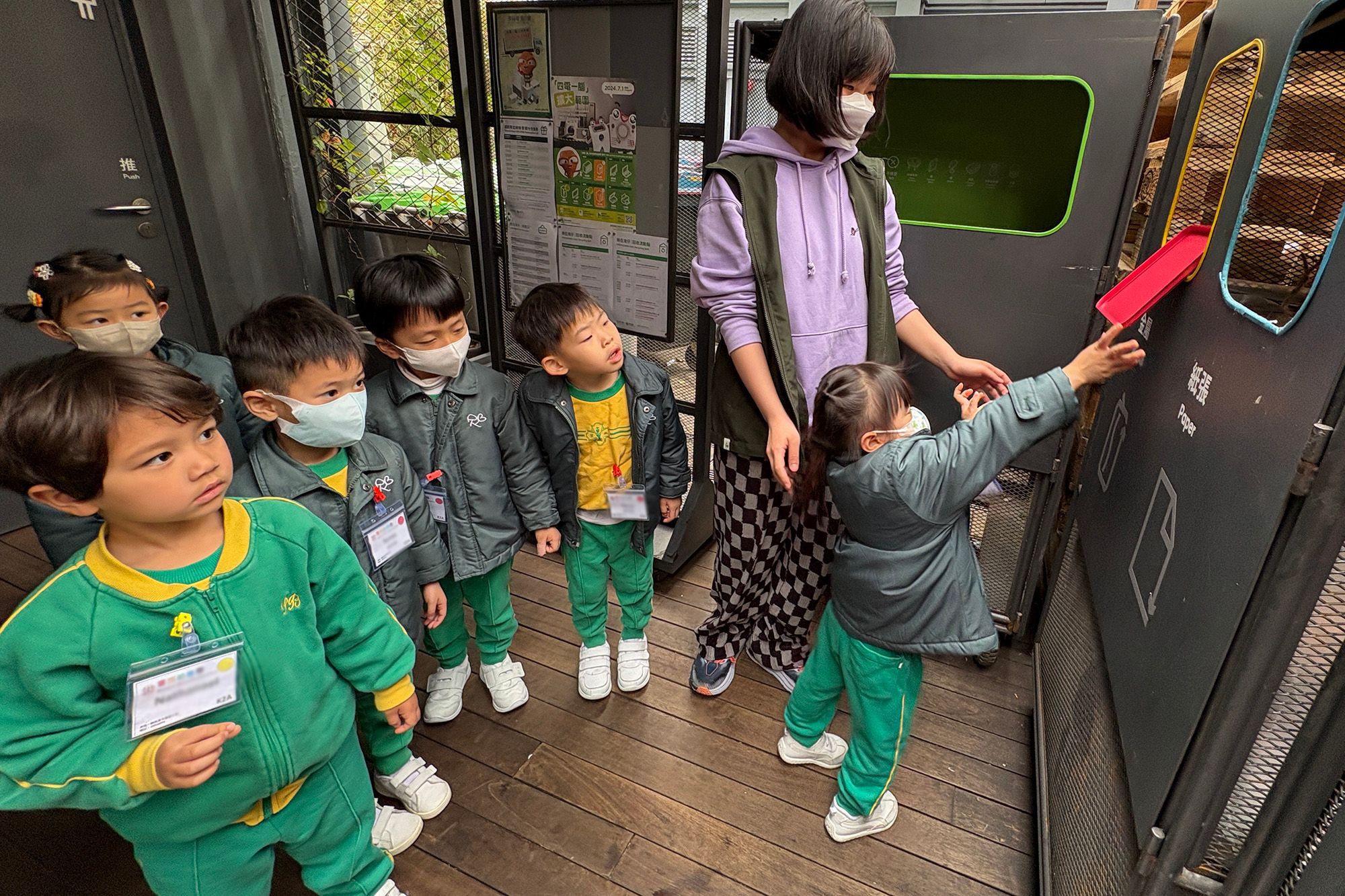 Dal 25 al 27 febbraio, i bambini delle classi K2 della scuola materna hanno visitato il Green di Wan Chai per un tour educativo. Grazie alle spiegazioni degli insegnanti e delle guide, i bambini hanno imparato i metodi di riciclaggio e smistamento dei rifiuti, nonché il programma di punti elettronici “Green Rewards”. Questa esperienza ha insegnato loro come prendersi cura della Terra e ha aumentato la loro consapevolezza ambientale. Durante la visita, i bambini hanno anche sperimentato la produzione di enzimi ecologici dalle bucce d'arancia. Tra tre mesi potranno usare questi enzimi per pulire la casa insieme ai genitori, cosa che li rende tutti molto entusiasti!