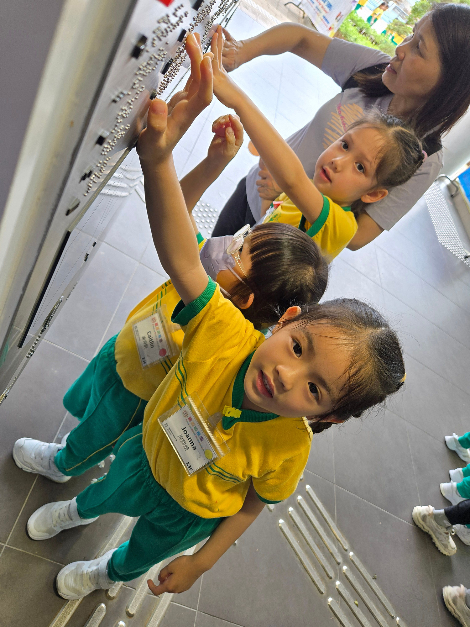 配合主題《巴特一家的新生活》,高班幼兒於2025年3月3日到銅鑼灣維多利亞公園進行參觀學習。透過實地參觀,讓幼兒認識和體驗園內不同的設施。例如:使用引路徑和斜道等不同的共融設施;認識遊樂場、網球場和籃球場等康體設施。幼兒亦透過實地參觀學習,了解使用社區設施時需要注意的守則。
