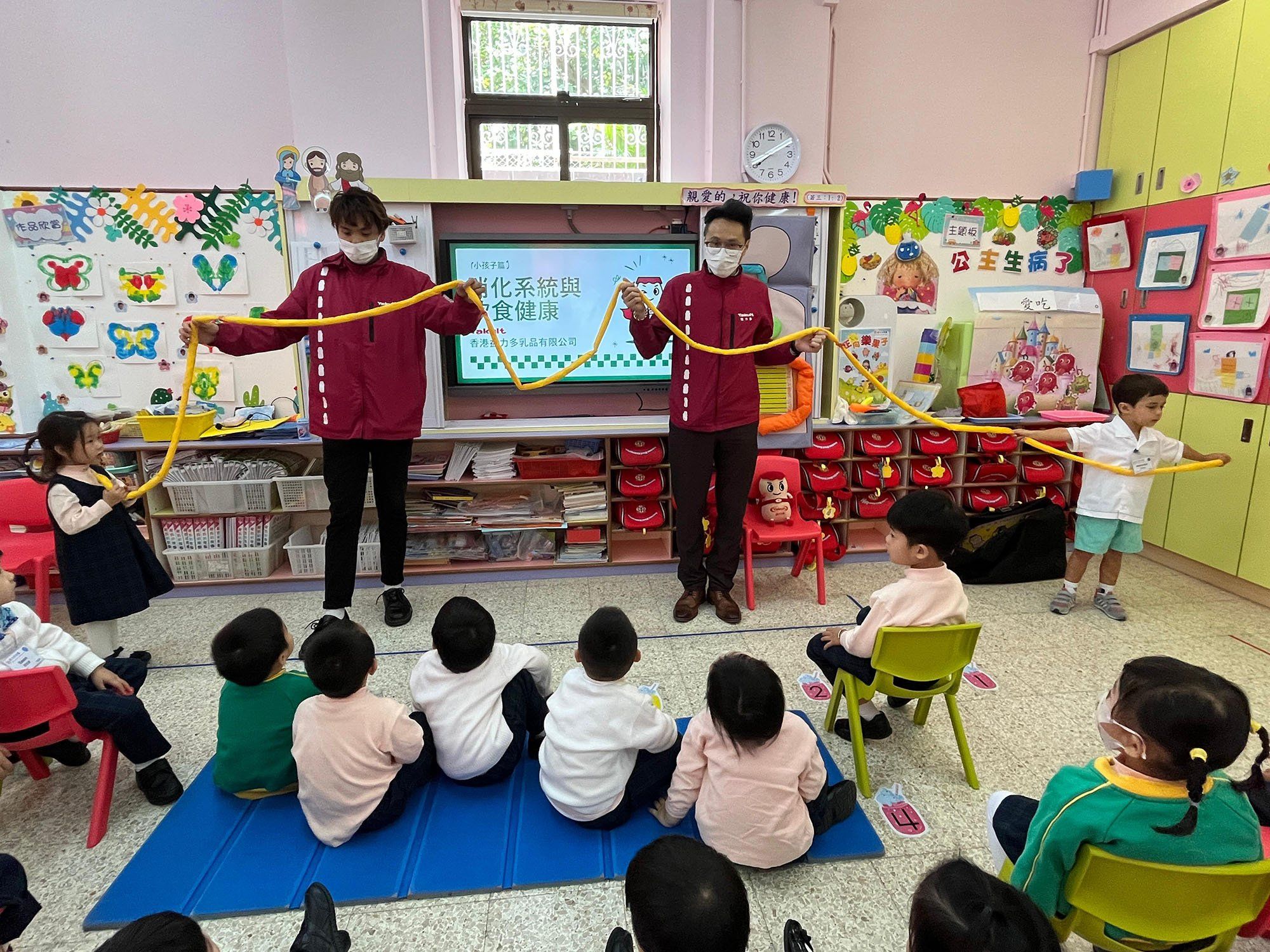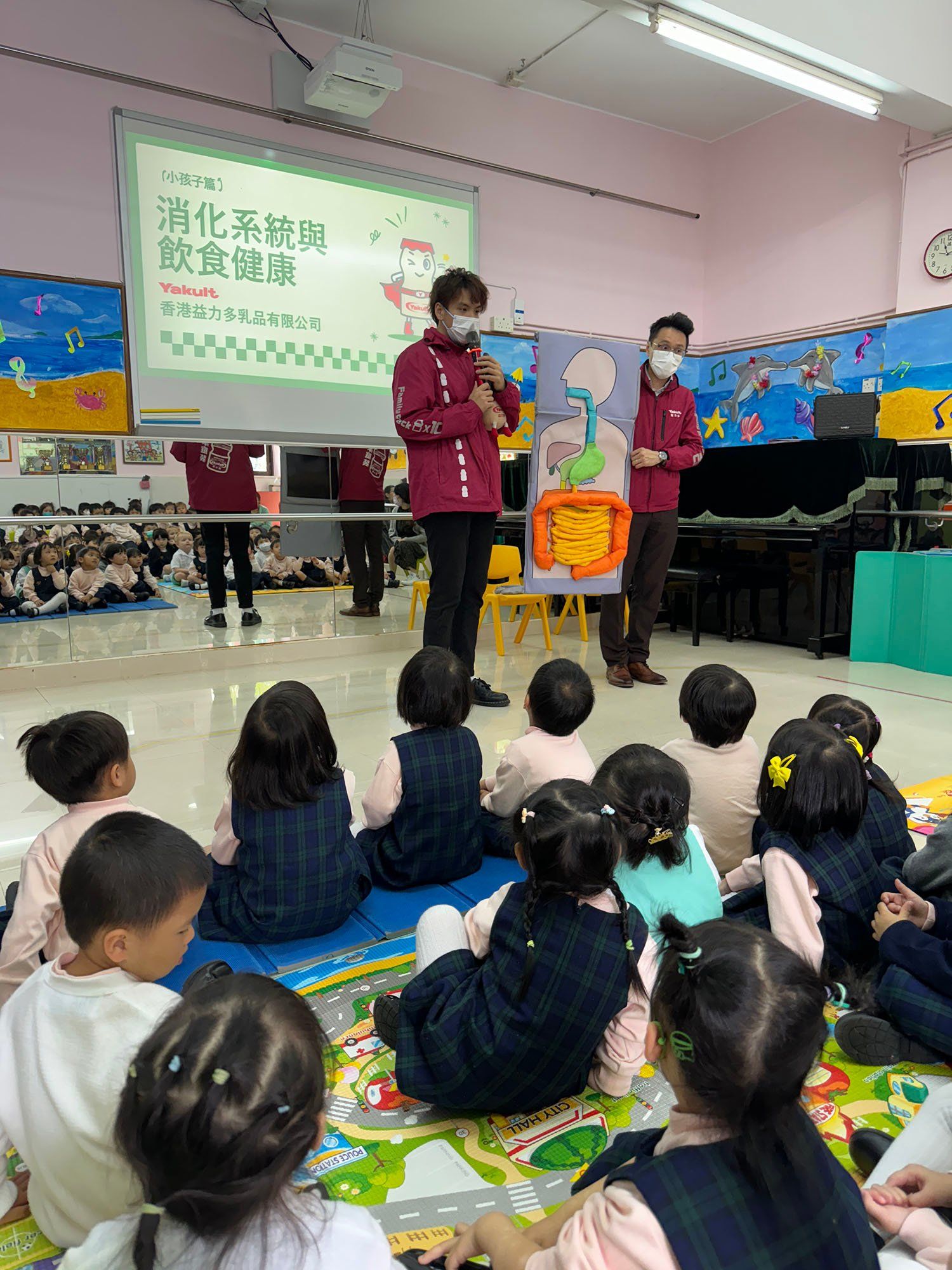 為配合幼兒班主題《公主生病了》,香港益力多乳品有限公司於2025年4月8日(星期二)來到我們學校為幼兒班學生舉行「健康飲食講座」。當天講者教導學生們有關健康腸道的知識,利用模擬人體器官教材,讓幼兒初步認識消化系統結構,同時講解健康飲食與排便的關係,分享了多種有益健康的飲食習慣。除此之外,還有生動有趣的動畫,讓幼兒更加投入和理解腸道內部的運作,清楚認識益生菌如何促進消化和增強免疫力,讓他們對健康飲食有更深刻的認識! 幼兒投入參與,學習健康飲食知識,幼兒更特意為講者製作感謝卡,以示謝意。