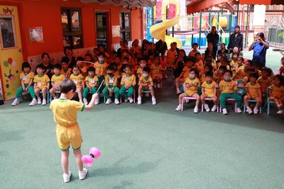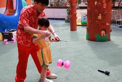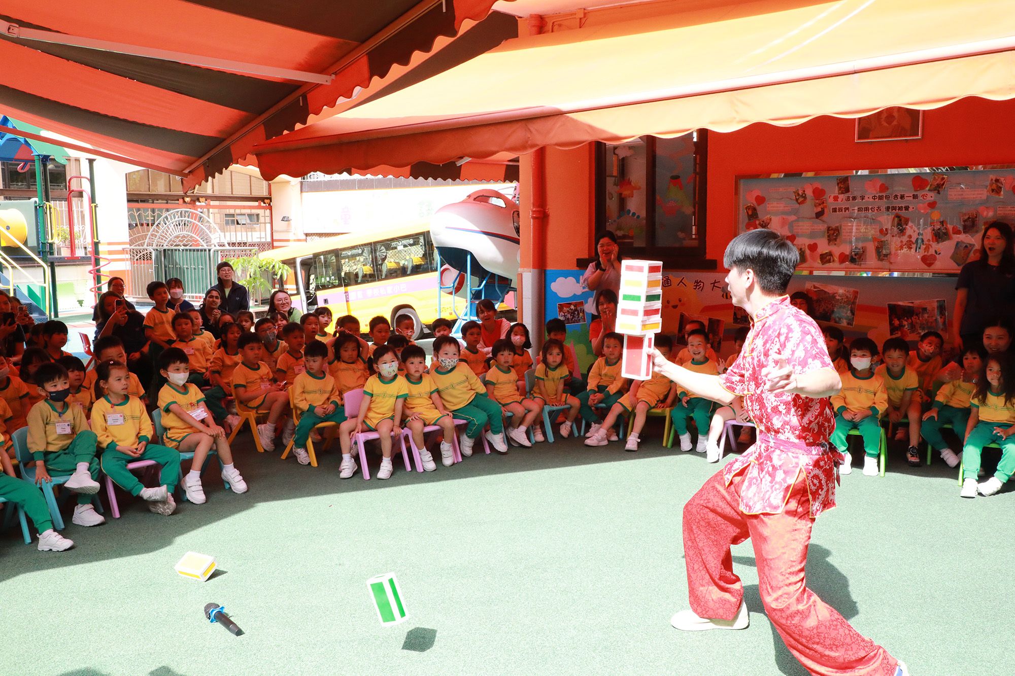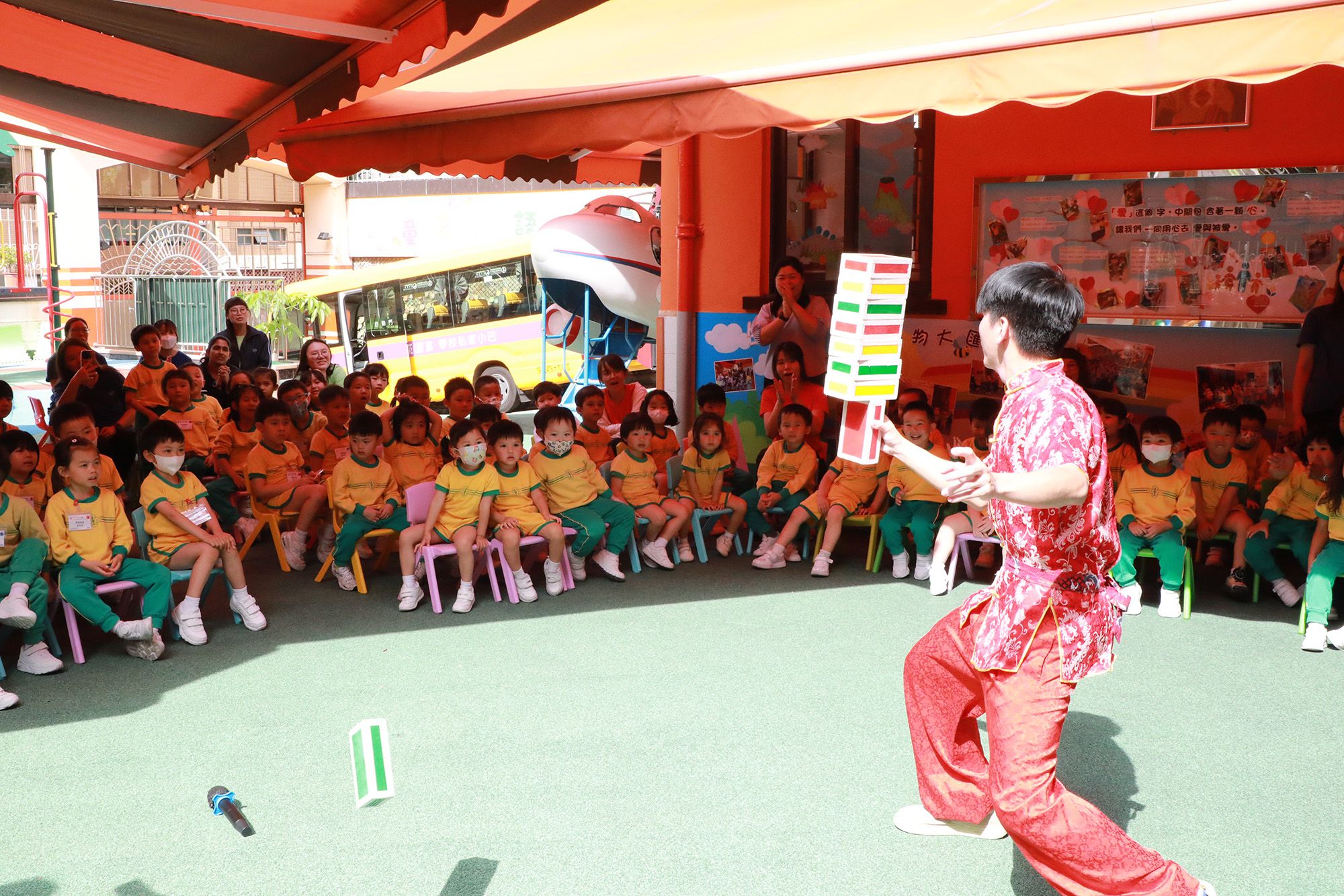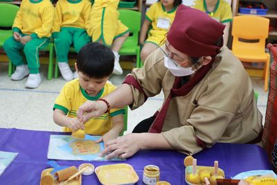 我們於4月14日在校內舉行「中華文化體驗日活動」,學校邀請表演團體到校進行京劇變臉和雜耍表演,讓幼兒認識京劇的來源、表演方法、並透過欣賞演員瞬間變出不同表情,從而讓幼兒感受中國民間國粹的奧妙之處。幼兒更能上台學習基礎技法,全場師生歡呼雀躍。欣賞節目期間,幼兒掌聲此起彼落,完全感受到中國民間國粹的奧妙之處。此外,我們亦安排了不同的工作坊體驗,例如製作麵粉公仔、捶丸和剪紙藝術等,讓幼兒於遊戲中認識中華優良傳統文化,培養幼兒對中國的歸屬感。