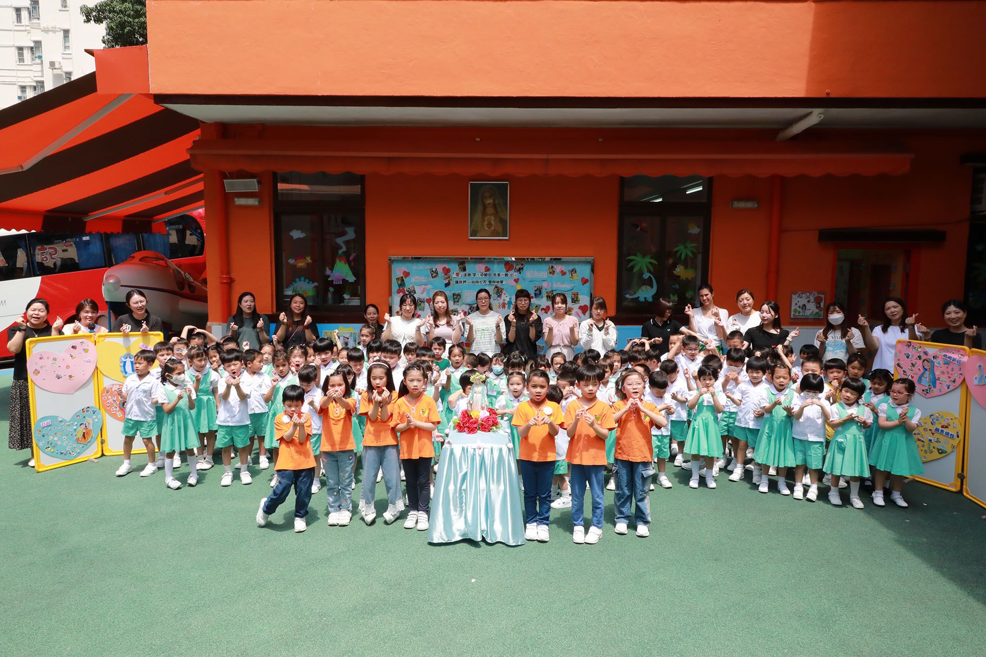 5月は聖母マリアの月です。聖母マリアへの崇敬と愛を表現するため、当校は5月13日(火曜日)に「聖母マリア月間崇敬活動 – 聖母マリア像の行列」を開催しました。校長の馬氏とキリスト教の小さな苗木の代表者たちによって、聖母マリア像はダイナミック・プレイグラウンドから廊下を通って、最終的に校庭まで運ばれました。全教職員と生徒が聖母の行列に続き、壮観で印象的な光景を築きました。途中、保護者の意向を祈り、 「ファティマの聖母」「聖母マリアは子供を愛する」「中国の聖母マリア」などの賛美歌を歌い、聖母マリアへの感謝と賛美を表現しました。子どもたちは、聖母マリアへの敬意の印として、最も大切にしているステッカーを捧げ、彼女の美徳を模倣し、日常の行動で応えることを誓いました。また、聖母マリアへの親孝行の愛を表現するために、心からのキスと飛ぶキスを捧げました。