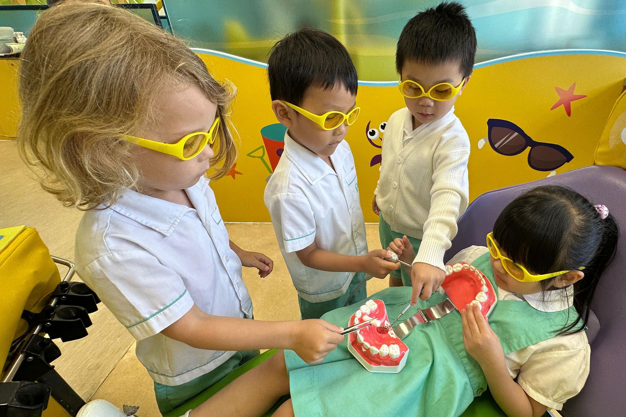 5월 15일 목요일, K1반 학생들은 브라이터 스마일 플레이랜드를 방문해 치아 청결 방법과 치아 건강 관리에 대한 관심을 기르는 방법을 배웠습니다. 가장 중요한 것은 아이들이 치과 의사 역할극에 참여하고 함께 노래를 부르는 등 재미있고 즐거운 방식으로 치아 관리에 대해 배웠다는 점입니다.