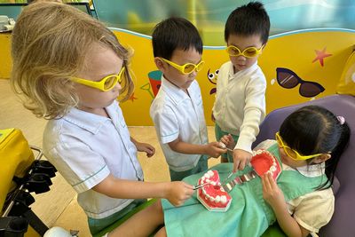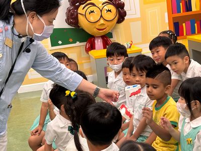 本園於5月15日(星期四)低班小朋友一起到陽光笑容小樂園參觀,學習清潔牙齒的方法,培養愛護牙齒健康的態度。最重要能讓幼兒一起進行模擬牙醫遊戲,一起唱唱歌,愉快地學習不同的保護牙齒知識。