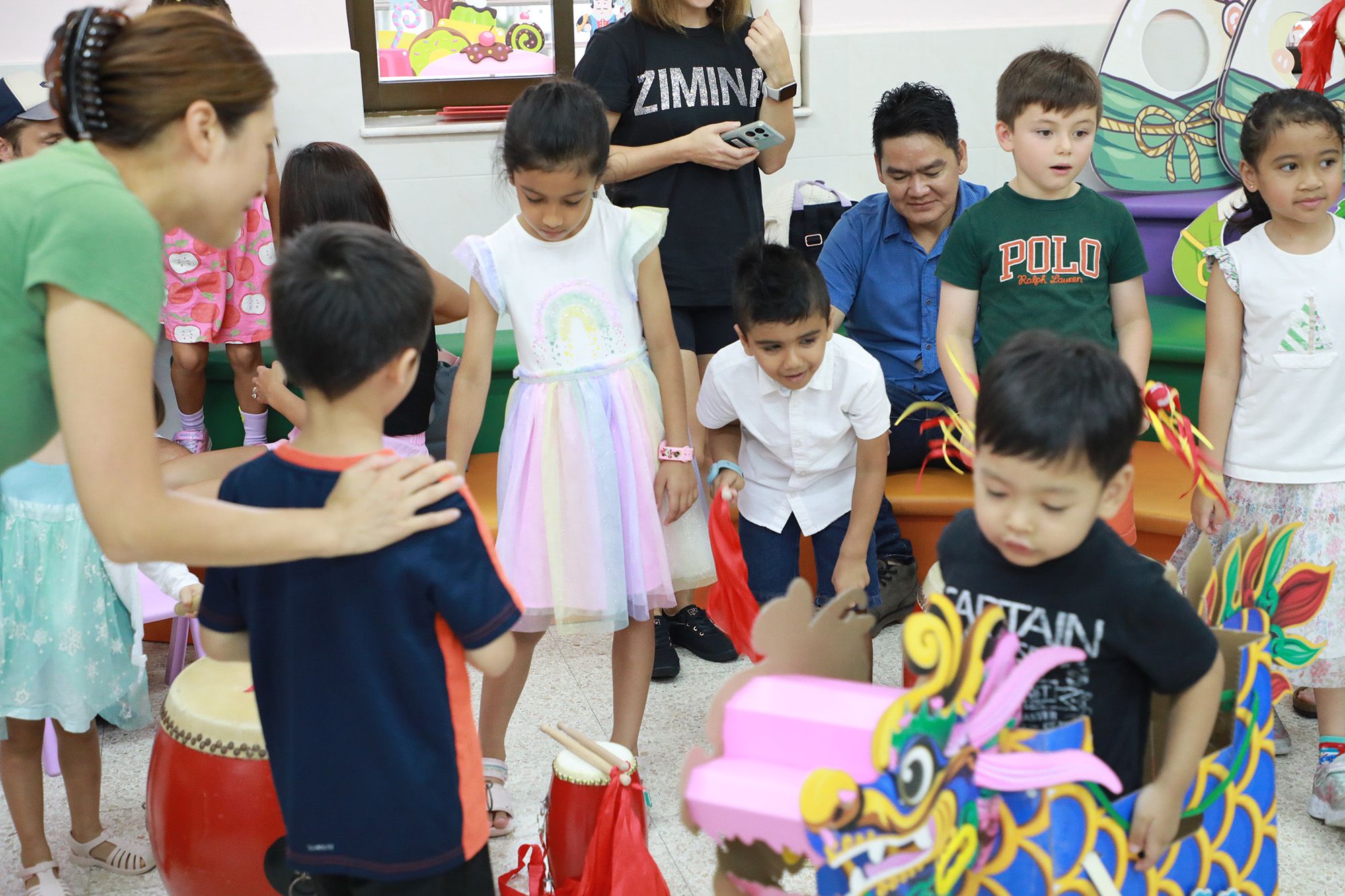 本校于5月24日在校内举行「中华文化传统节日-端午节亲子工作坊」,让非华语幼儿及家长认识端午节的意义和习俗文化,感受中国节日的热闹气氛!活动内容非常丰富,当中包括品尝粽子、划龙舟体验及聆听端午节的故事等,让幼儿接触及了解中国传统节日的习俗及文化,透过参与端午节的节日文化活动,让非华语家庭共渡佳节的欢乐。
