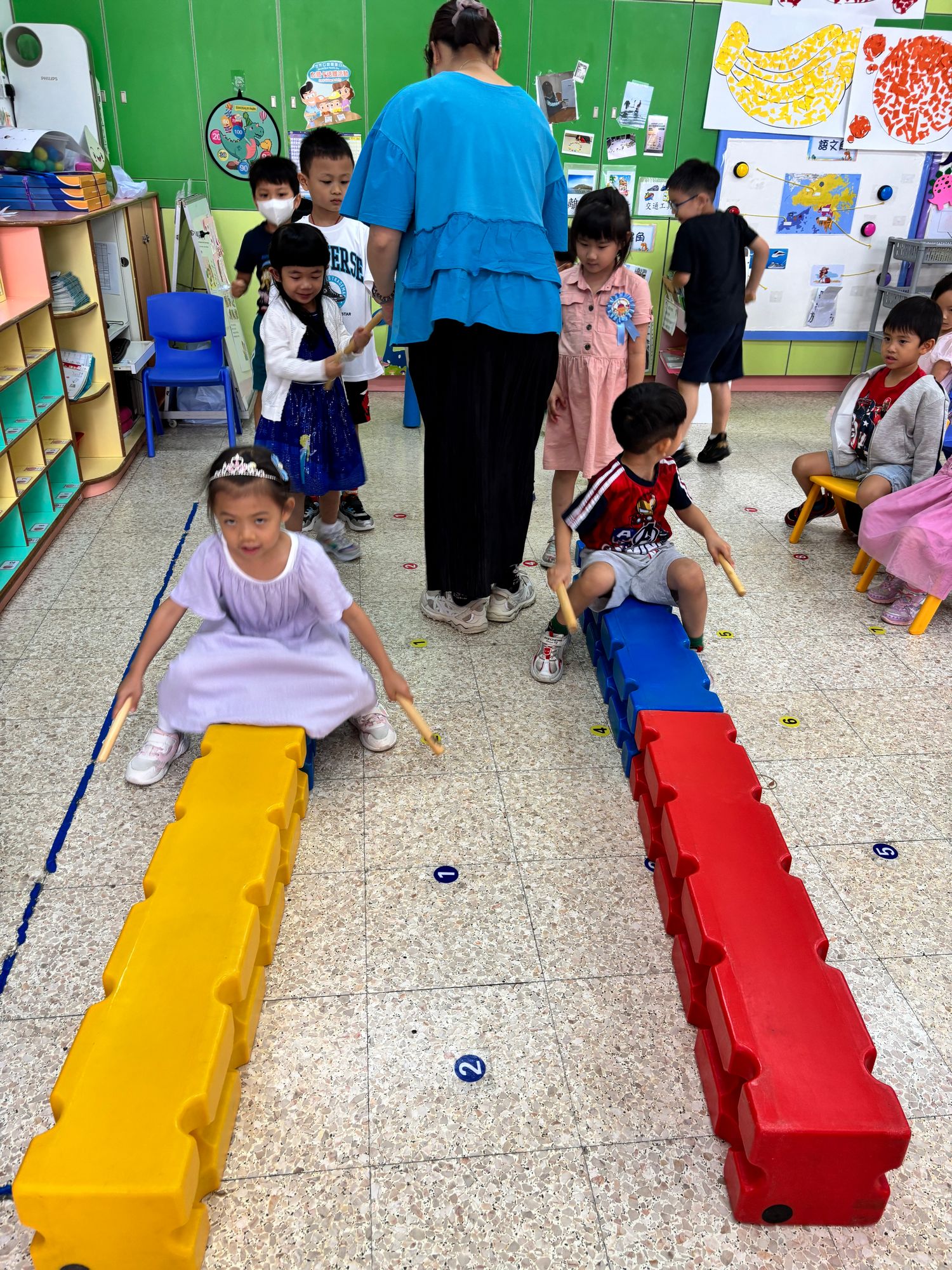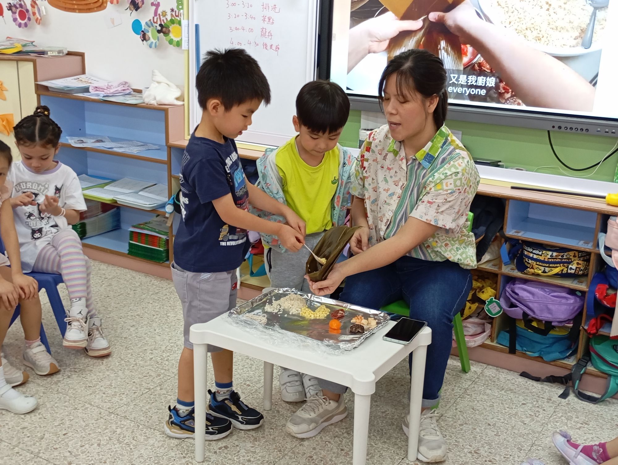 단오(5월 30일) 전날, 유치원에서는 생일 파티와 함께 '용선 경주 축제'를 열었습니다. 아이들은 동요와 이야기를 통해 명절의 유래와 의미를 배웠습니다. 용선 노 젓기, 찹쌀떡(찹쌀떡) 계주 등 다양한 게임에 참여했습니다. 선생님들이 찹쌀떡 만드는 법을 시연한 후 아이들이 함께 맛보며 명절의 문화적 전통을 체험했습니다. 5월과 6월 생일을 맞은 아이들을 위한 생일 사진 촬영과 축하 행사도 진행되었습니다.