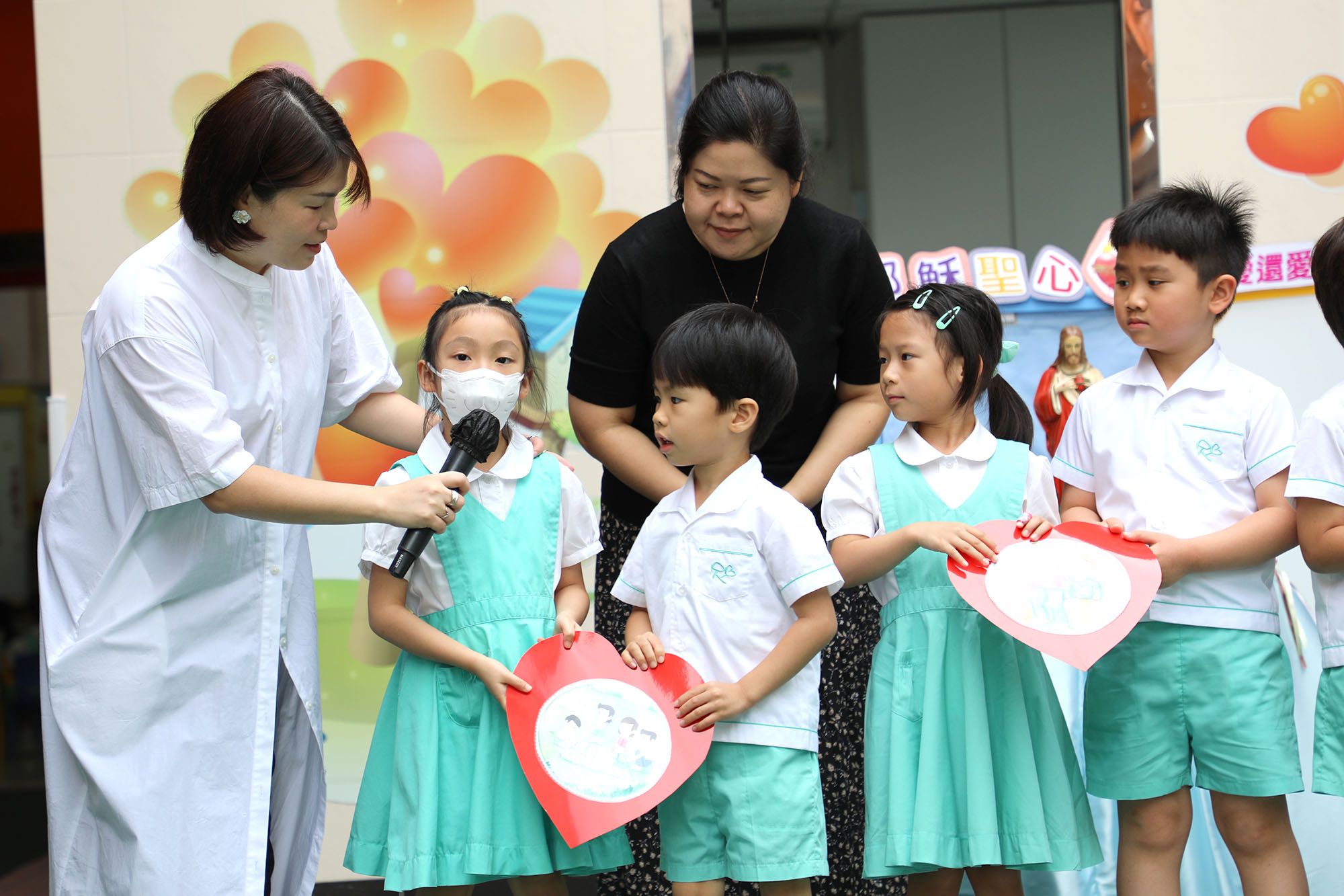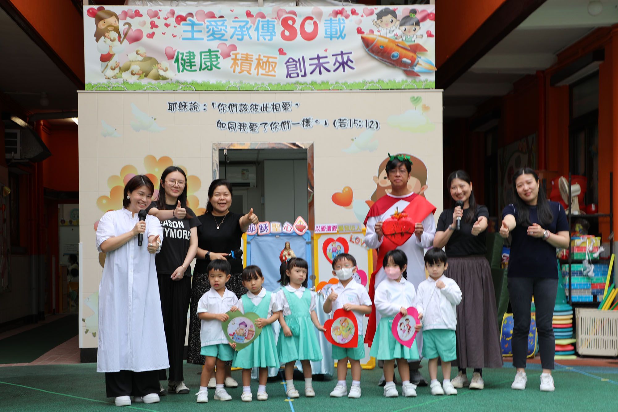 六月份是耶穌聖心月,六月五日(星期四)學校舉行「耶穌聖心」敬禮,我們邀請老師扮演耶穌大哥哥並介紹耶穌聖心,小朋友看見耶穌哥哥聖心上的刺,紛紛承諾願意做愛德的好行為來減輕耶穌哥哥痛苦。看!耶穌哥哥多麼開心啊!小朋友願意跟隨耶穌做一個好孩子。