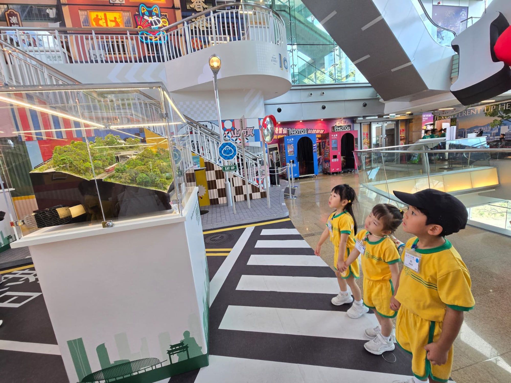 On the day, they rode the cable car slowly up the mountain, enjoying the magnificent mountain views along the way. The children were very excited! Upon arriving at the summit, they visited the famous Peak Tower to admire the unique features of Hong Kong's architecture and take photos as souvenirs. The children also visited the Lion Pavilion, a structure with traditional Chinese architectural features, where they stood at a high vantage point to overlook the stunning views of Hong Kong's Victoria Harbor. Along the way, the children greeted tourists in various languages and welcomed them to Hong Kong, demonstrating great bravery and confidence! The teachers and children had a wonderful and enjoyable day together!