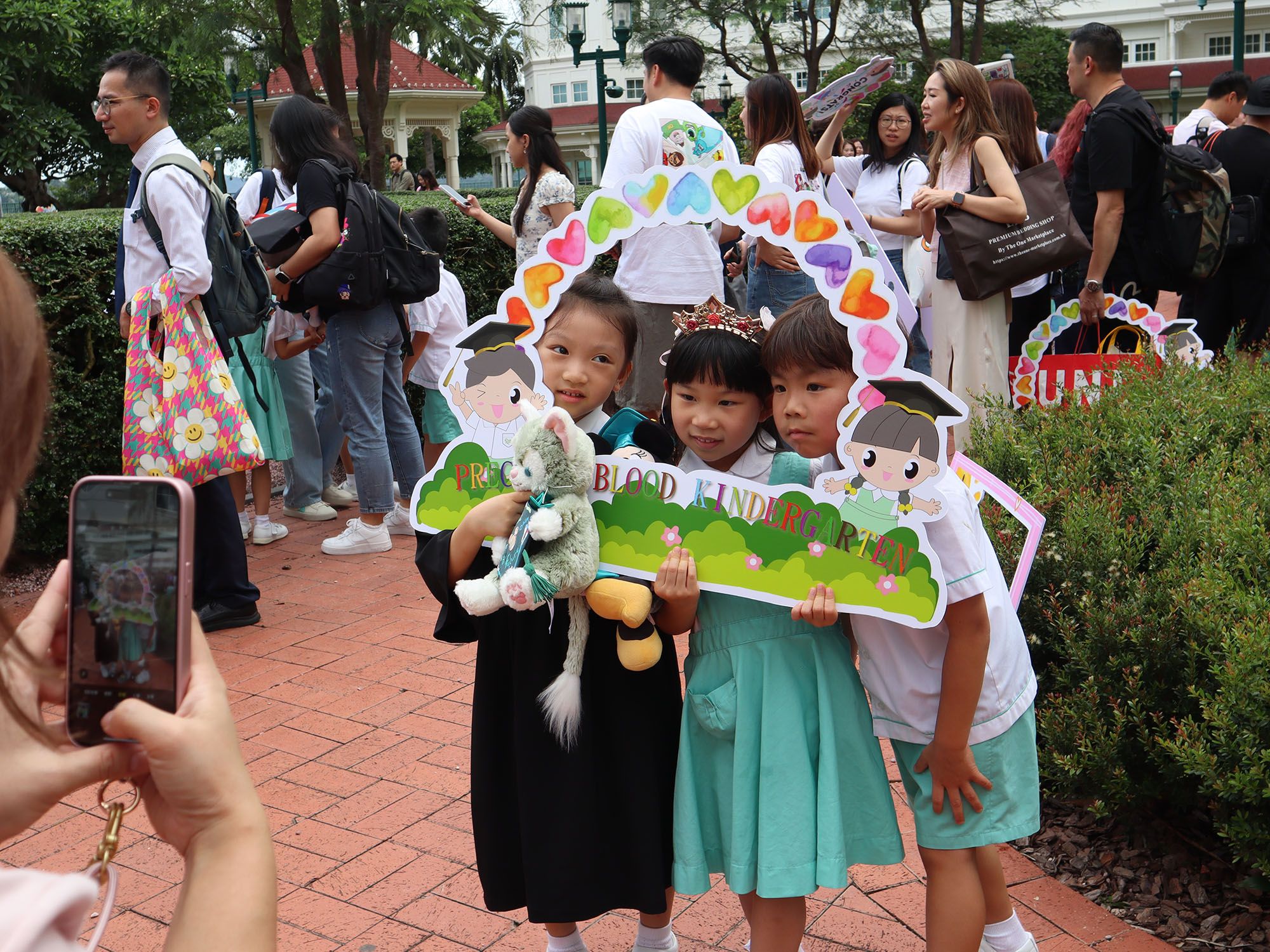 Le vendredi 27 juin 2025, le « banquet de remise des diplômes » s'est tenu à l'hôtel Hong Kong Disneyland. Ce jour-là, les diplômés et leurs parents se sont réunis pour partager la joie de la remise des diplômes. Le banquet a commencé par un discours d'encouragement et de bénédiction adressé aux enfants par Sœur Au Yee Man, la directrice de l'école, et le directeur Ma Sau King. Les diplômés ont ensuite pu prendre des photos avec Mickey et Minnie avant de profiter d'un somptueux buffet ! Au cours de l'événement, les diplômés de chaque classe se sont relayés pour présenter des programmes. Enfin, tout le personnel a préparé une courte vidéo pour encourager les enfants, les exhortant à continuer à apprendre avec une attitude saine, positive et innovante et à s'efforcer de devenir des élèves du primaire ! De plus, l'école a préparé plusieurs cadres photo pour les diplômés, permettant aux parents et aux enfants de prendre des photos dans le jardin de l'hôtel Disney !