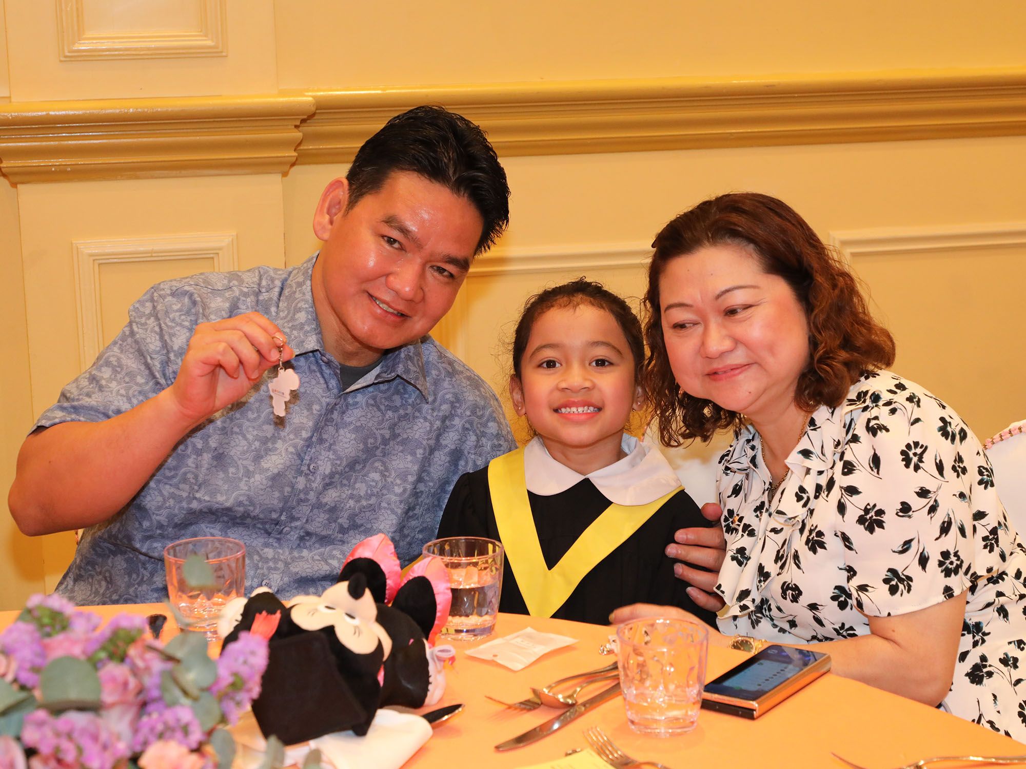 2025년 6월 27일(금요일), 홍콩 디즈니랜드 호텔에서 '졸업 만찬'이 열렸습니다. 그날 졸업생들과 부모님들은 졸업의 기쁨을 함께 나누기 위해 모였습니다. 만찬은 학교 감독관 오 이 만(Au Yee Man) 자매와 마 소 킹(Ma Sau King) 교장이 아이들에게 격려와 축복의 말을 전하며 시작되었습니다. 이어 졸업생들은 미키와 미니와 함께 사진을 찍은 후 화려한 뷔페를 즐겼습니다! 행사 중 각 반의 졸업생들은 차례로 멋진 프로그램을 선보였으며, 마지막으로 모든 교직원들은 아이들을 격려하는 짧은 영상을 준비해 건강한, 긍정적인, 혁신적인 태도로 계속 배우고 초등학교 학생이 되기 위해 노력하라고 독려했습니다. 또한 학교는 졸업생들을 위해 여러 개의 사진 프레임을 준비해 부모와 아이들이 디즈니 호텔 정원에서 사진을 찍을 수 있도록 했습니다!