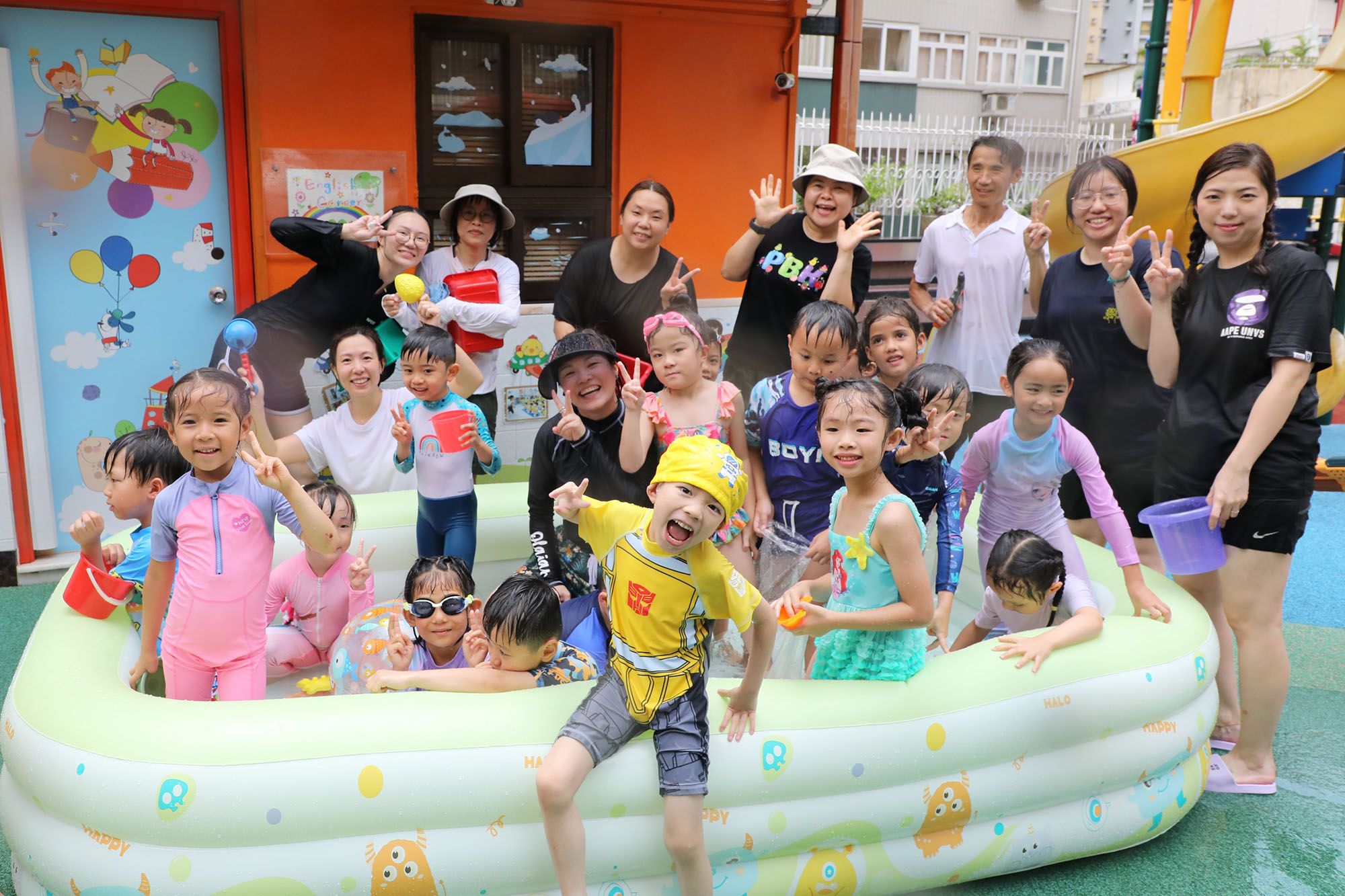 在2025年7月3日和4日,我们举办了「动力水世界」的活动!在这个炎热的夏天,宝血幼儿园变成了一个充满欢乐的「水上乐园」。全校的老师和小朋友们都穿上了色彩缤纷的泳衣,大家一起跳进喜乐西瓜水池,还参与水枪大战等好玩有趣的活动。