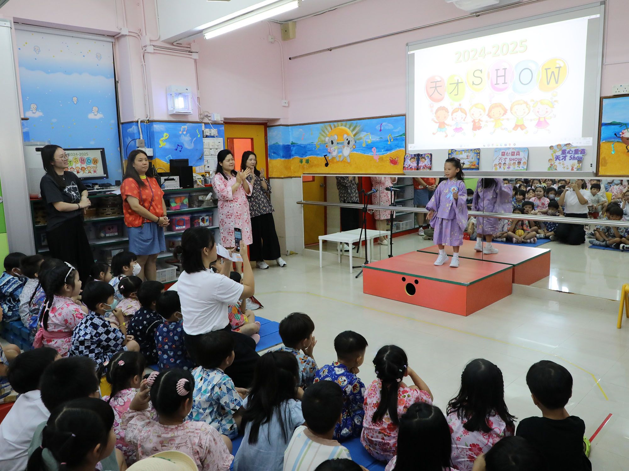 本园于2025年7月7日为7、8月生日的小朋友举办了别开生面的「盛夏狂欢夏日祭」生日派对,让幼儿度过了一个既清凉又有环保教育意义的夏日时光!幼儿穿着缤纷的夏日浴衣,化身成小小救援队员,在课室内寻找合适的器皿,然后到校园各处搜寻水源,齐心协力为缺水的海洋生物解渴。更特别的是,大家使用环保手摇扇,一边为彼此带来凉爽微风,一边进行趣味十足的「拨波波」游戏,现场欢笑声不断!接着,幼儿合作解救困在冰块中的小动物,各班小朋友运用智慧和团队合作,尝试各种方法融化冰块,成功救出被困在冰中的小动物。这个环节不仅考验孩子们的耐心与创意,更让他们深刻体会到合作的重要性。同日,幼儿带来了精彩的「童心童真天才Show」,节目内容丰富多元,包括:舞蹈、歌唱、魔术、跆拳道等。小小表演者们自信满满,充分展现了他们的多元才华!这次活动让幼儿在游戏中学习环保知识、培养团队精神,并获得展现自我的宝贵机会。