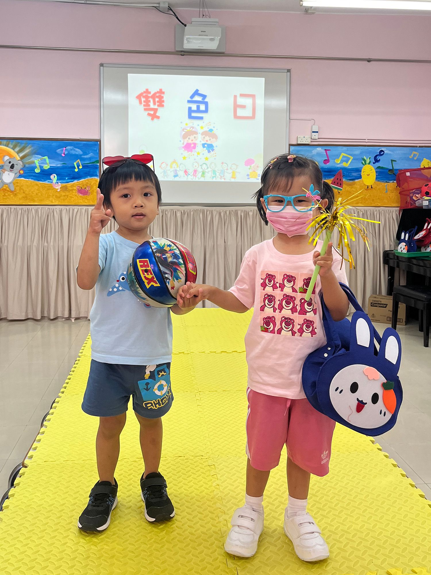 On Tuesday, October 15, 2024, we held a “Two Tones Day” in our school. On that day, children dressed up in red or blue and became little models, walking on the “bridge” to show off their beautiful outfits to the audience and posing in cute poses. Look! These children were very happy and confident, and through this activity, they were able to strengthen their understanding of the colors red and blue.