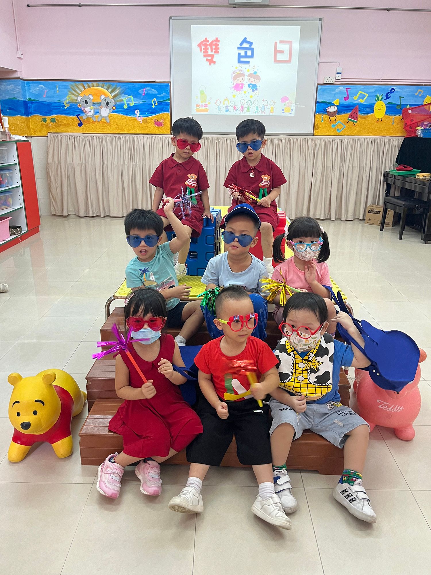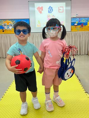 2024年10月15日(星期二)我們在校內舉行了「雙色日」活動。當天小朋友穿著了紅色或藍色的服飾,一起變成了小小模特兒,走在「天橋」上,向台下的觀眾展示自己美麗的服飾,更擺出可愛的造型。看!這群小朋友愉快投入,滿有自信,透過活動鞏固小朋友對紅色和藍色的認識。