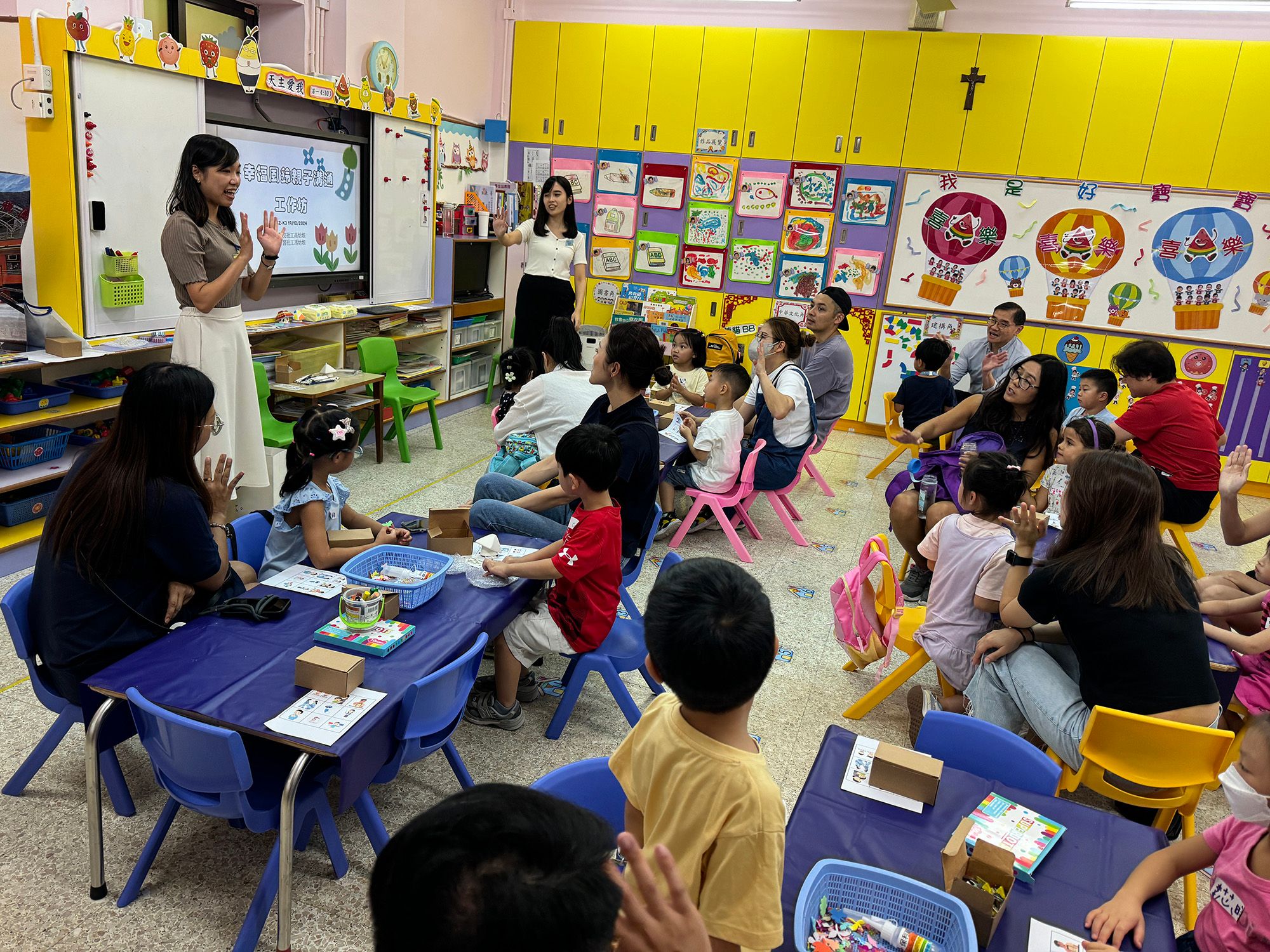 Dans la matinée du 19 octobre (samedi), les parents ont mis leur travail de côté et sont venus à l'école maternelle du Précieux Sang pour participer à l'atelier parents-enfants « Joyeux carillons éoliens ». Mme Gao, l'assistante sociale résidente, a guidé les parents et les enfants dans la fabrication d'un carillon éolien. Au cours de cet atelier, les parents ont pu mettre en pratique les compétences de communication parent-enfant qu'ils avaient acquises sur place, et laisser libre cours à la créativité et à l'imagination de leurs enfants en les appréciant et en les encourageant. Une fois le travail terminé, tous les participants ont emporté les joyeux carillons éoliens avec eux et ont souhaité que la communication parents-enfants soit aussi paisible que les carillons éoliens et que les enfants grandissent dans un environnement plein d'amour.