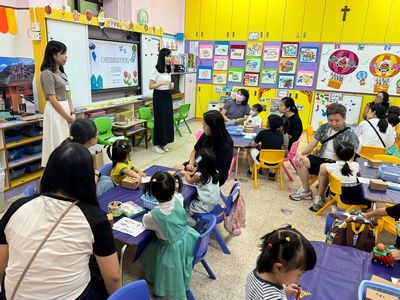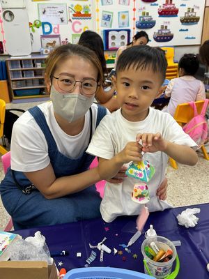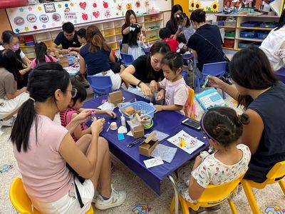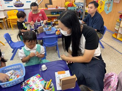 10月19日(星期六)的早上,家長放下工作與幼兒一起來到寶血幼稚園參加「幸福風鈴」 親子溝通工作坊。駐校社工高姑娘帶領家長與幼兒一起製作風鈴,過程中,家長能即場把所學的親子溝通技巧運用出來,透過讚賞和鼓勵發揮幼兒的創造力及想像力。完成作品後,大家帶著幸福風鈴,祝願親子的溝通如風鈴般平靜,幼兒在充滿愛的環境中成長。