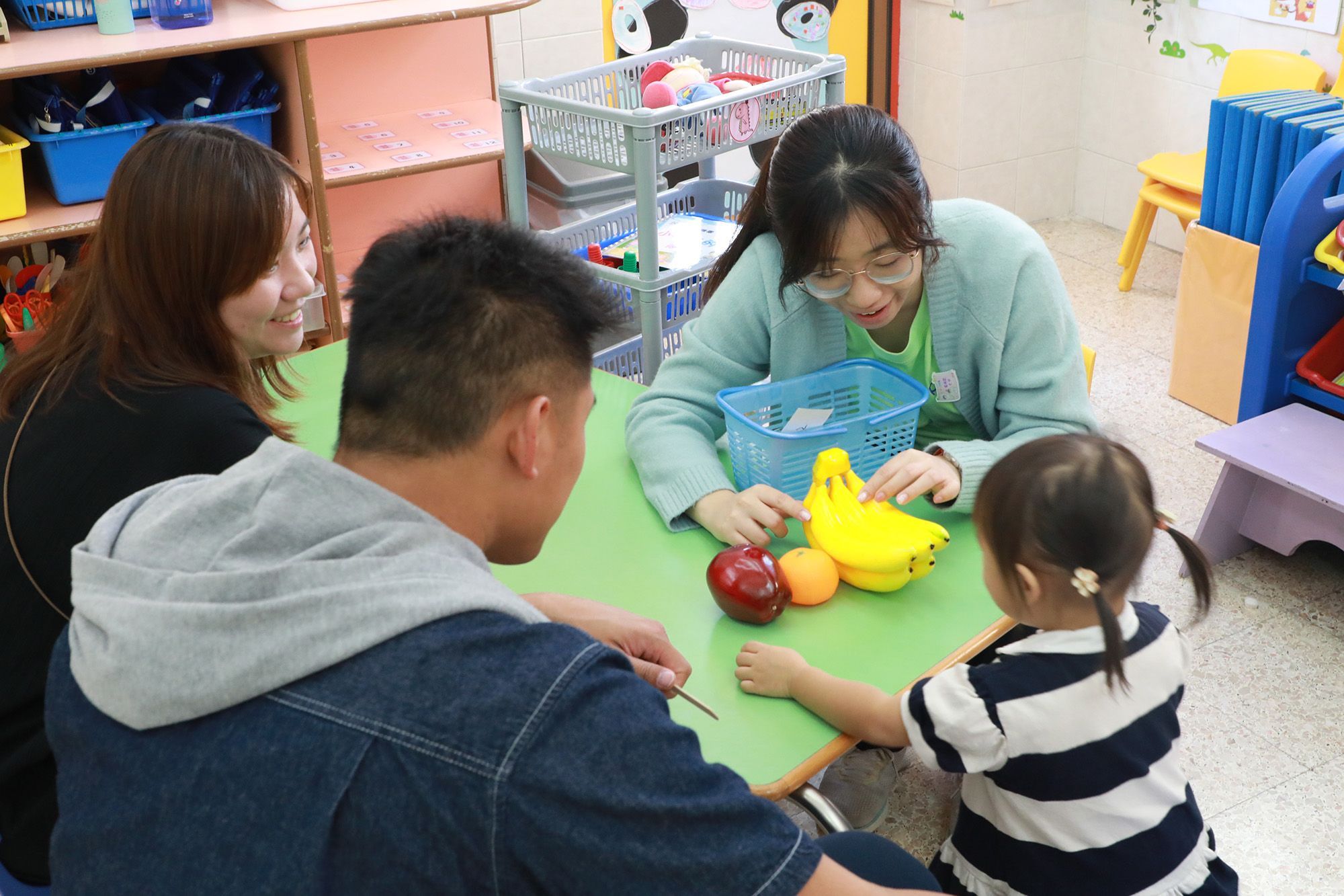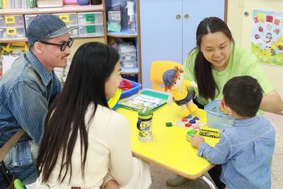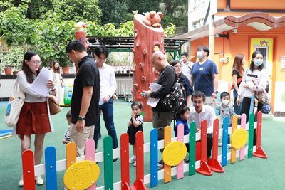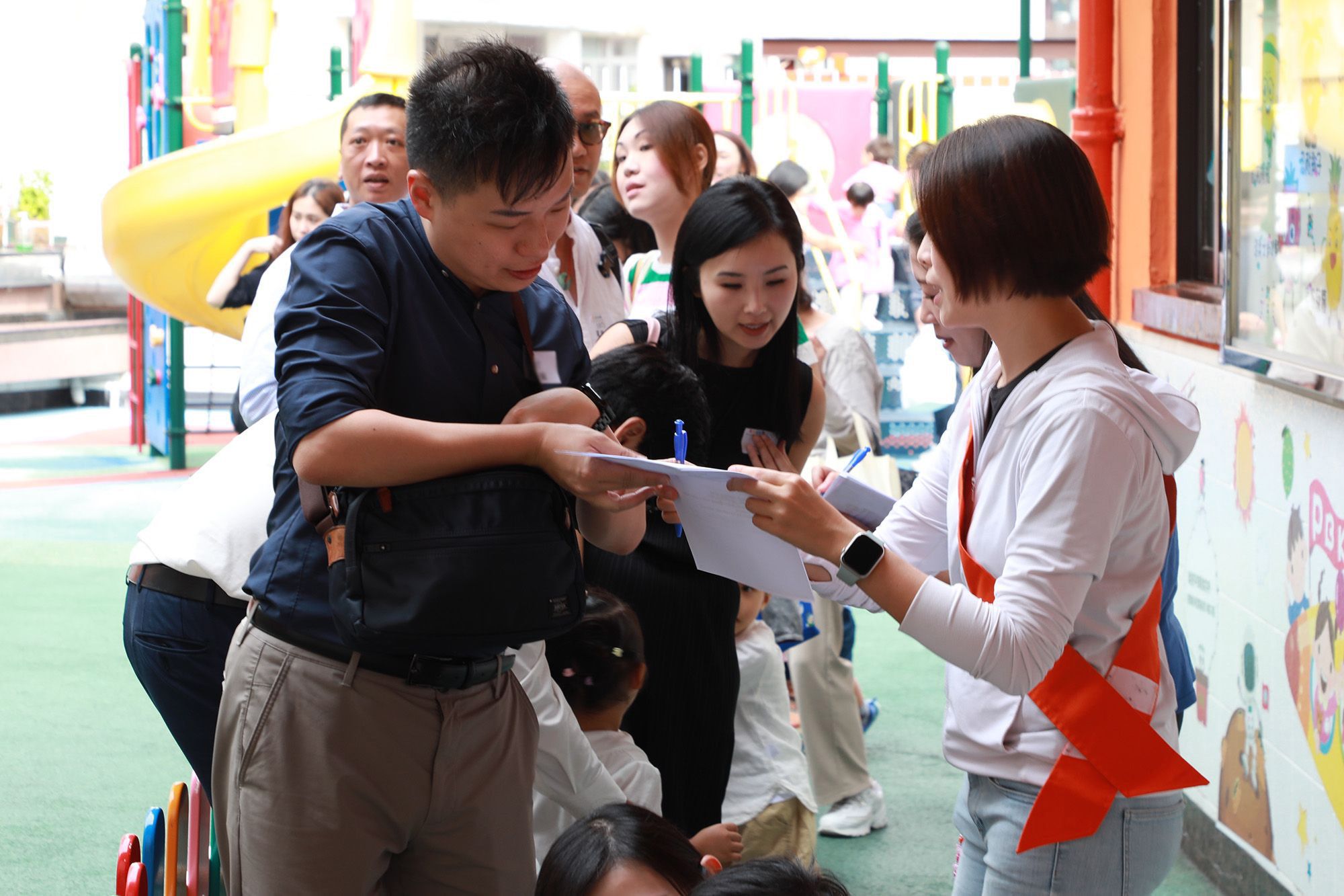 在2024年11月8日(星期五)及11月9日(星期六)為準備2025/26學年入讀本園的幼兒進行接見活動,當天家長陪同小朋友到校,他們先在操場上玩滑梯、搖搖船及轉轉杯等遊樂設施,然後到遊戲室與老師一起玩角色扮演和體能遊戲,彼此建立關係後再到接見室與老師以遊戲形式進行面見,家長亦與老師分享幼兒的個性及生活點滴,讓老師更了解幼兒的發展。