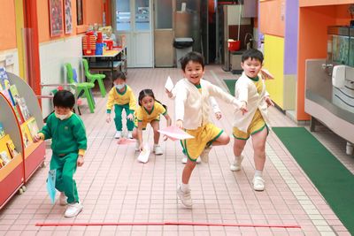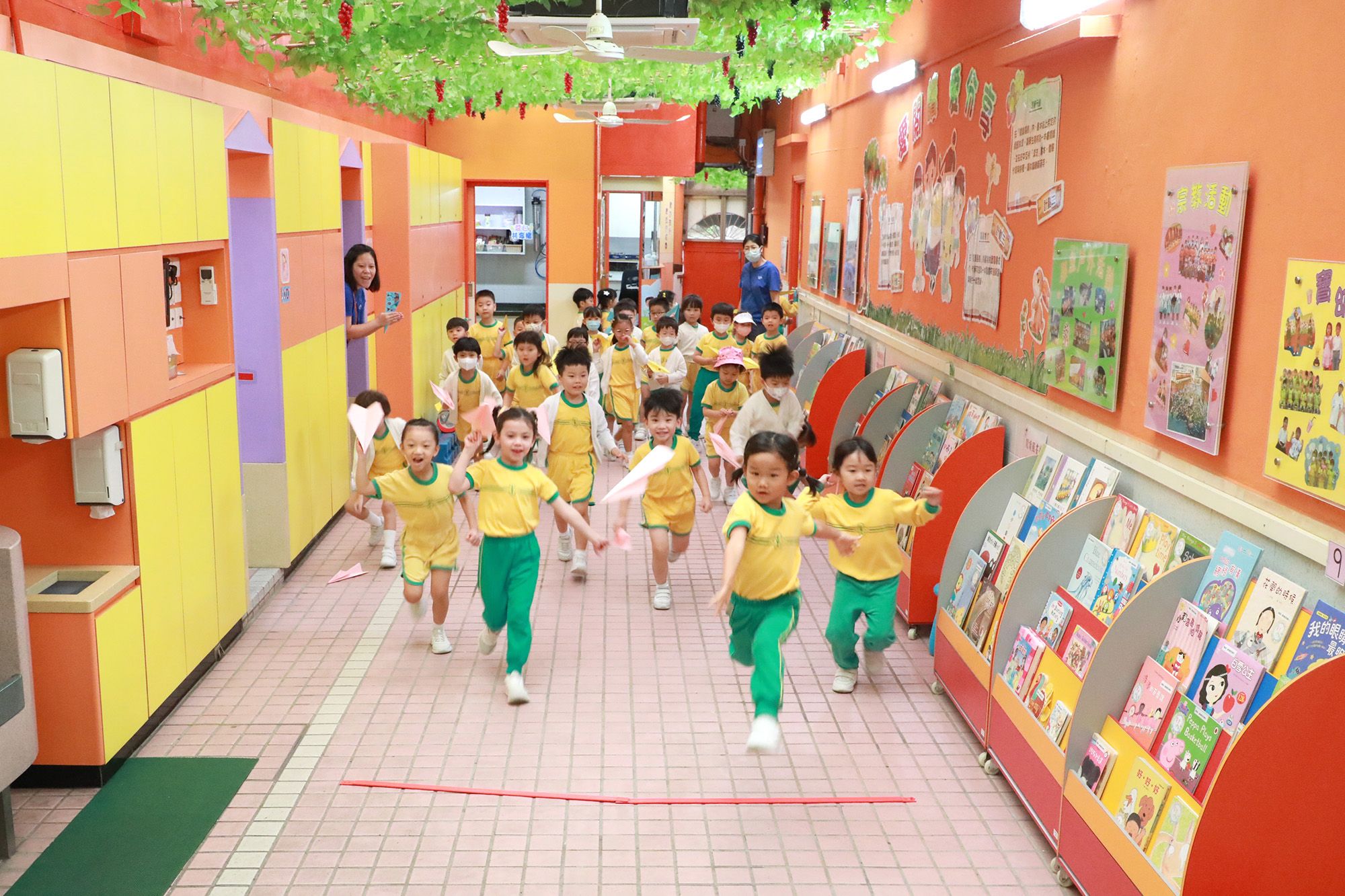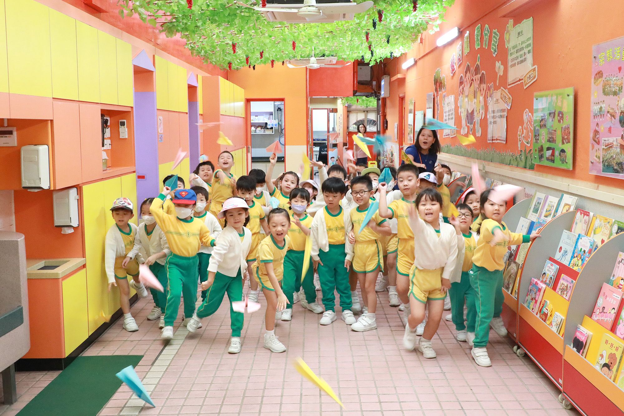 2024年11月13日(星期三)高班小朋友原定前往將軍澳單車公園作秋季旅行,可惜天公不作美,下起雨來,我們只好改在校內進行不同的遊戲,但亦無阻幼兒那股玩樂的衝勁,他們投入地參與各種集體遊戲,又利用自製紙飛機進行飛行比賽。幼兒都十分興奮和雀躍,校園內充滿著幼兒的歡笑聲,他們度過了愉快的一天。