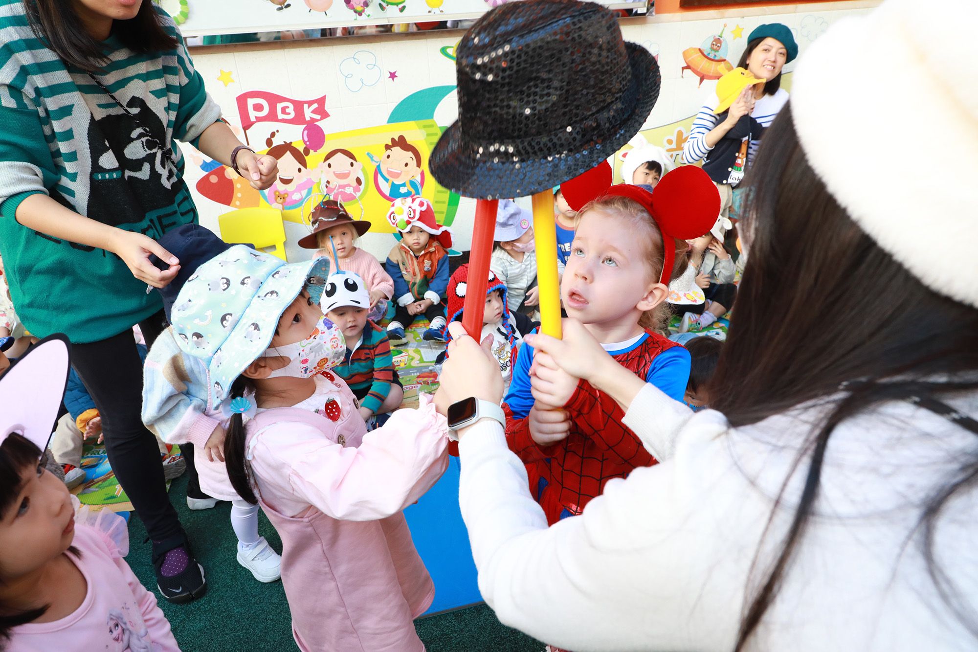 本园于2024年11月26日(星期二)为11月及12月份生日小朋友举行生日会,为生日的小朋友送上祝福,一起渡过了美好的一天!当天师生们都戴了自己最喜欢的帽子回校,有些帽子还是家长亲手设计和制作,每一位都悉心打扮。大家戴着帽子齐集操场一起玩游戏、跳墨西哥帽子舞,现场充满着欢乐的笑声,最后幼儿还听了一个充满爱的故事《爱心帽子》作完结。
