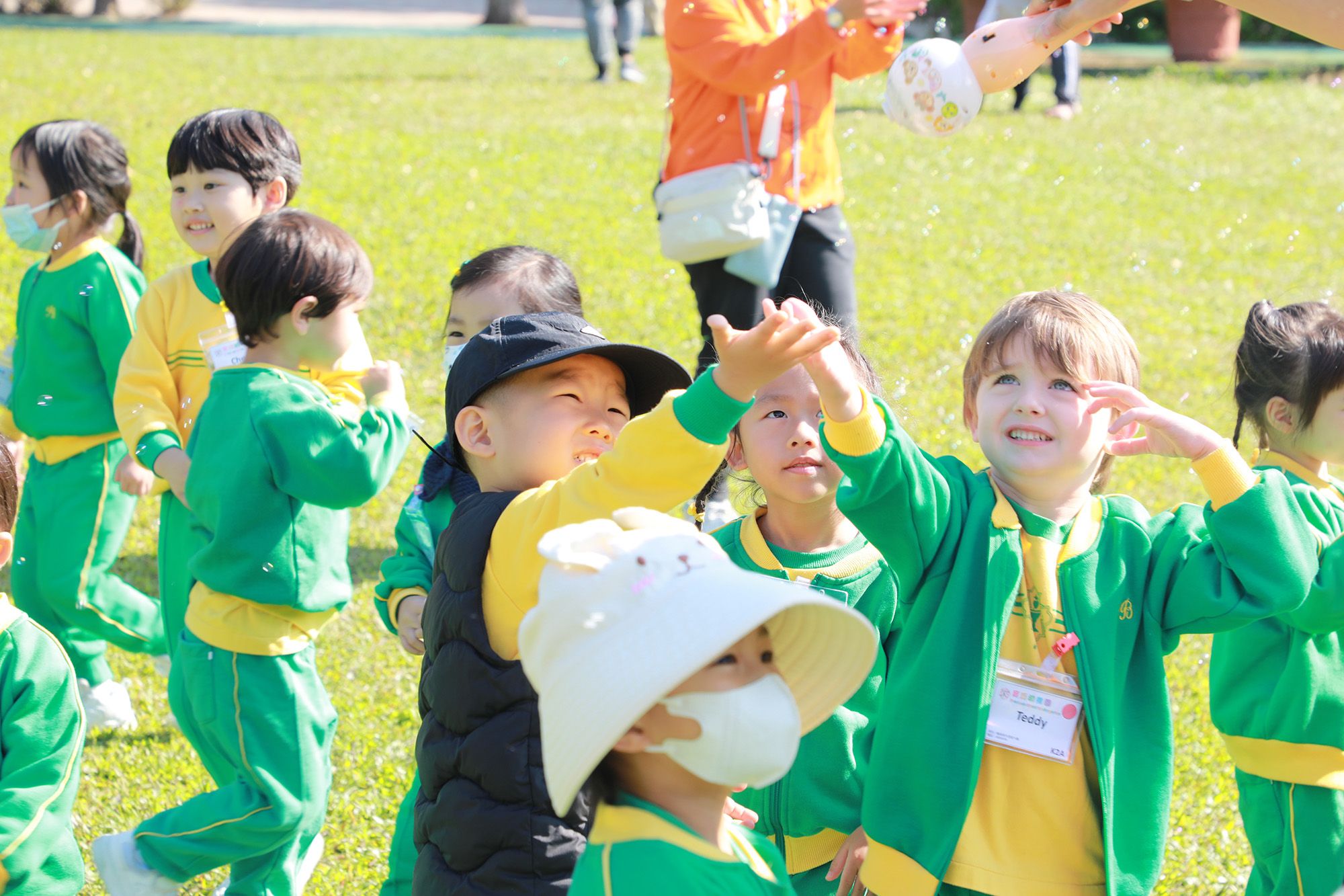 2024年11月27日(星期三) 是低班小朋友去旅行的大日子。当天天气清朗且微风送爽,大家高高兴兴地一同乘坐校车前往佐敦谷公园探索大自然及进行各类活动。幼儿到达公园后走到草坪上一起玩抢尾巴、彩虹伞等集体游戏,还与老师一起玩吹泡泡,接着还在翠绿的草地上野餐,欣赏天父为人类作出多奇妙的创造呢!