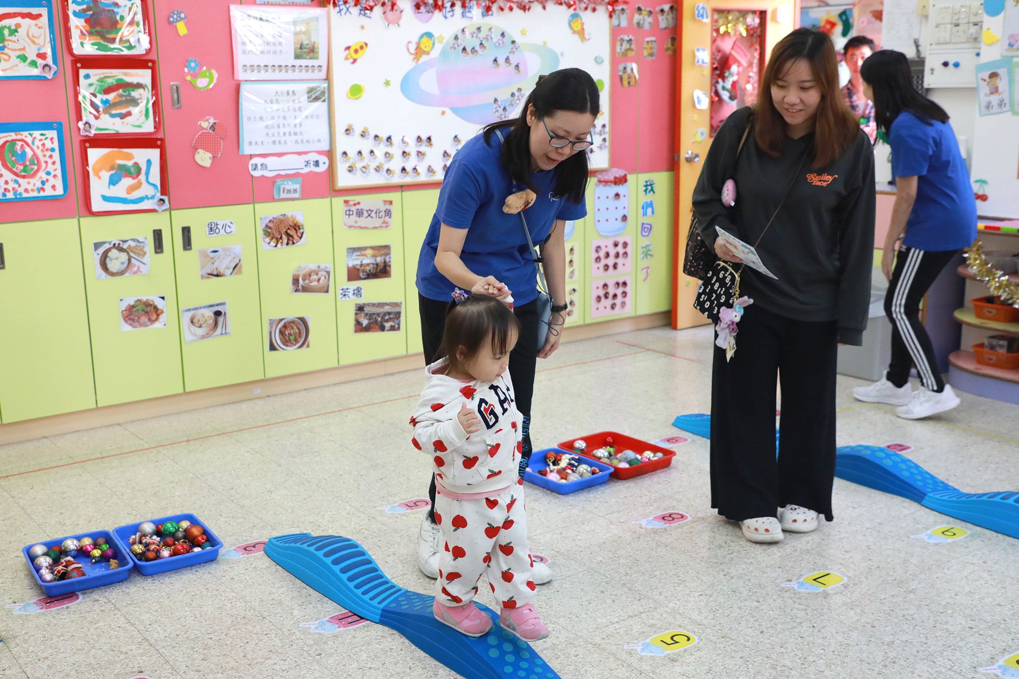 本园于2024年12月7日(星期六)邀请了下年度入读幼儿班的小朋友及家长到校参加「欢笑乐园」活动,让他们认识校园环境及设施,感受老师的关爱。当日学校挂上不同的圣诞装饰,满布节日的浓厚气氛,家长与幼儿于操场体验乘坐校车的乐趣,同时亦到课室参与各式各样的精彩游戏,例如: 圣诞公仔手绘、勇闯绳网阵、宝宝跳弹床、圣诞吊饰创作及Peppa Pig皮影戏剧场等,当日家长及幼儿们都玩得十分尽兴,四处都充满着愉快的笑声
