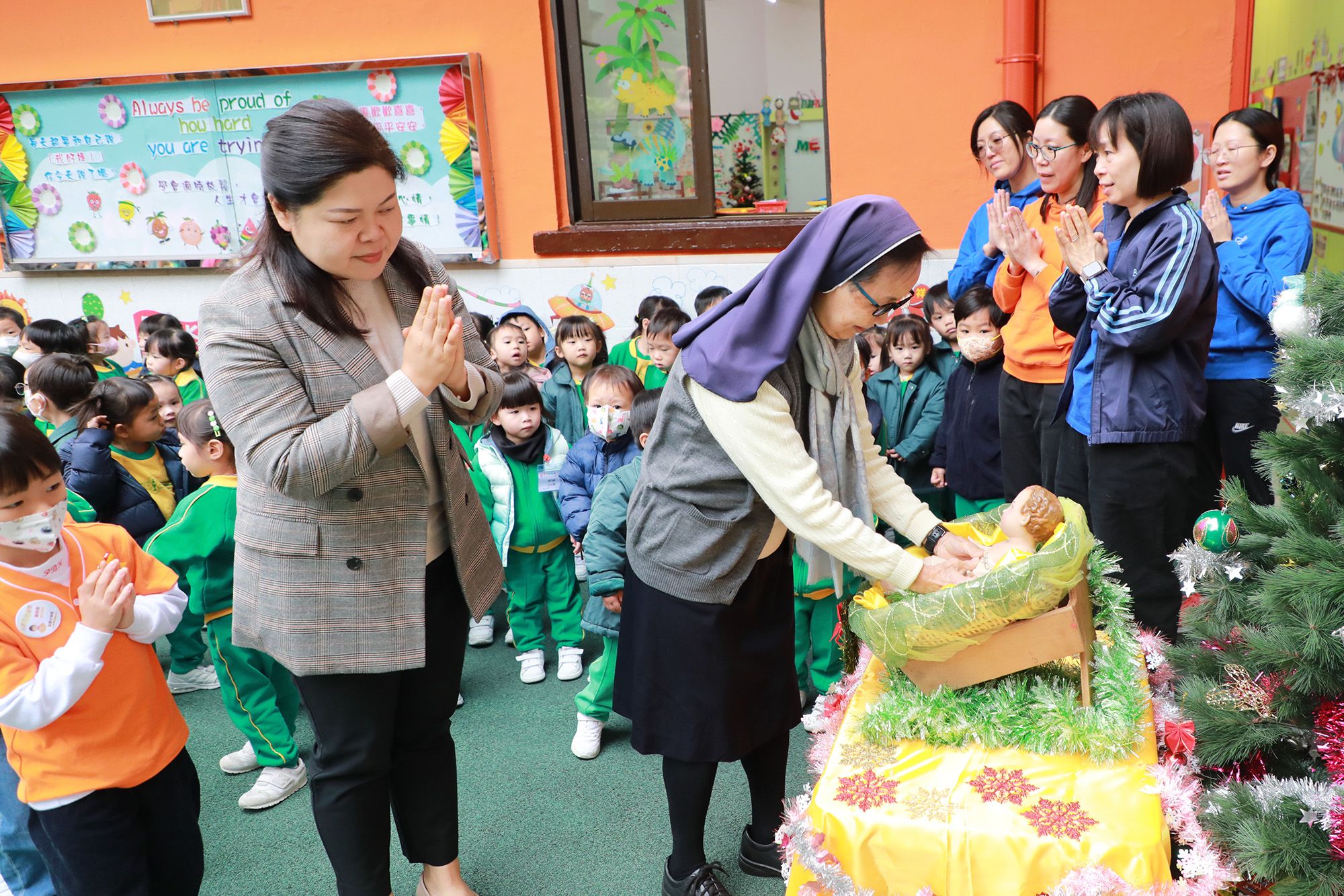 2024年12月16日在学校举行「圣诞感恩祈祷会」,我们特别邀请了甘修女主持圣诞感恩祈祷会,全校师生齐集操场一起祈祷,然后甘修女抱着圣婴绕场一周,带领基督小幼苗随后,当小朋友看到小耶稣感到满心兴奋。小耶稣来到世上,带来爱、平安和喜乐给我们,小朋友也将爱送给身边的同伴,送上心心和拥抱,场面温馨,愿小耶稣的降临祝福所有家庭!