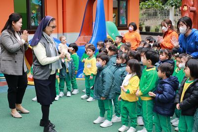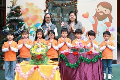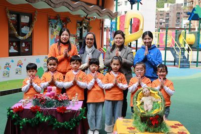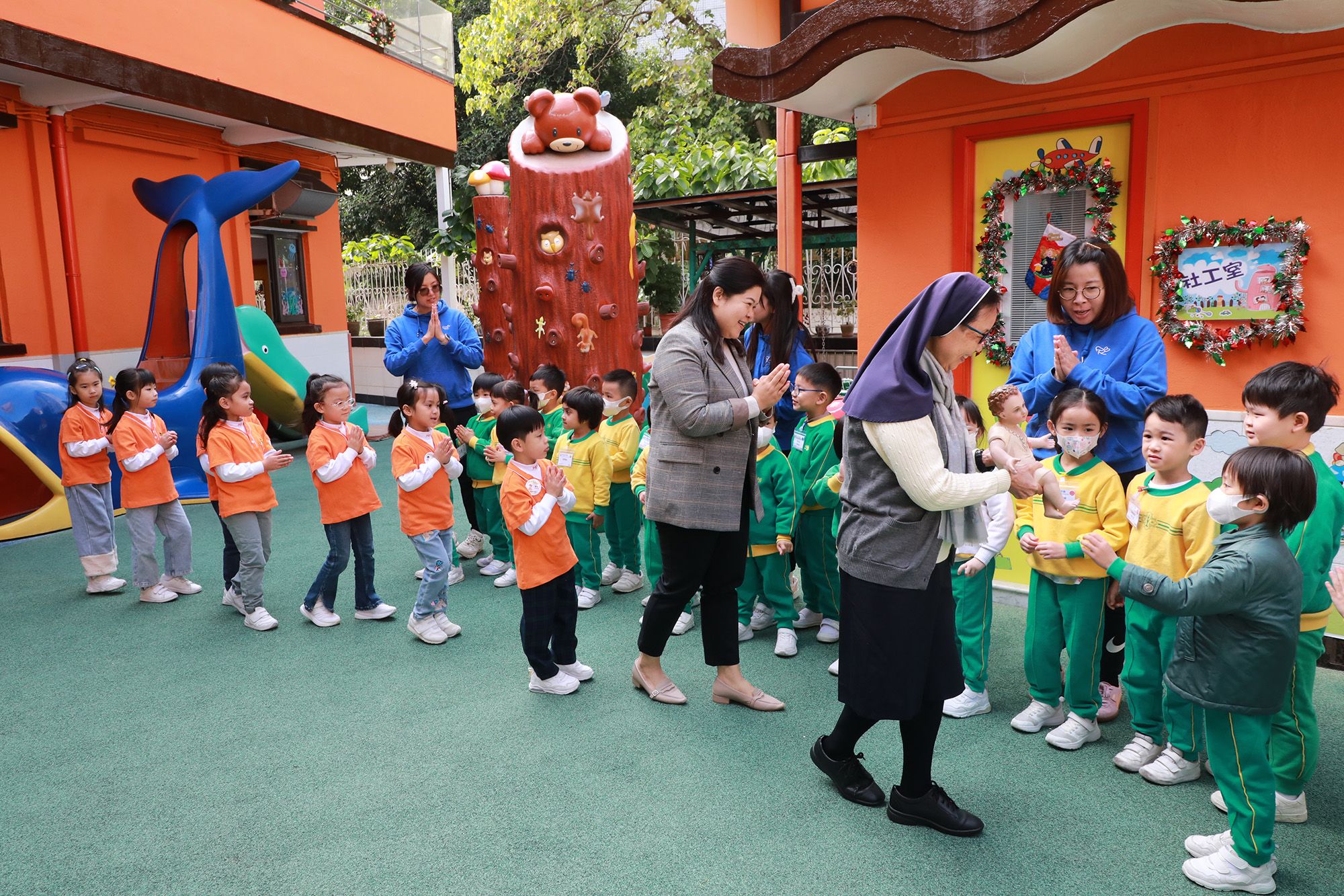 2024年12月16日在學校舉行「聖誕感恩祈禱會」,我們特別邀請了甘修女主持聖誕感恩祈禱會,全校師生齊集操場一起祈禱,然後甘修女抱著聖嬰繞場一週,帶領基督小幼苗隨後,當小朋友看到小耶穌感到滿心興奮。小耶穌來到世上,帶來愛、平安和喜樂給我們,小朋友也將愛送給身邊的同伴,送上心心和擁抱,場面溫馨,願小耶穌的降臨祝福所有家庭!