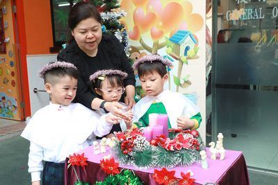 將臨期是為慶祝耶穌聖誕前的準備期與等待期。今年的將臨期是由2024年12月1日至12月24日,馬校長每星期在將臨環燃點一支蠟燭:「醒寤、悔改、喜樂」提醒大家作好準備迎接耶穌誕生。